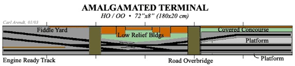 Designed for passenger stock, the two overbridges convince you that 2 coaches are really 10. I fancy building this as an interurban line, so that one or two car trains are prototypical.