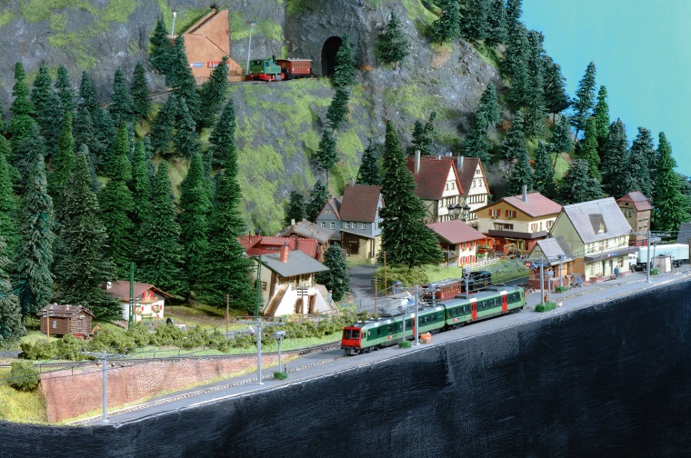 Our Swiss layout, Dreibruken was donated to the club, and already 25 years old when we took her over. ESNG completely renovated the layout, and Dreibrucken has been a firm exhibition favourite. Unfortunately, the old lady is now a bit past it and has been retired. In 2005, Dreibruken appeared in the Continental Modeller, with some lovely photographs by Len Weal (one shown below)