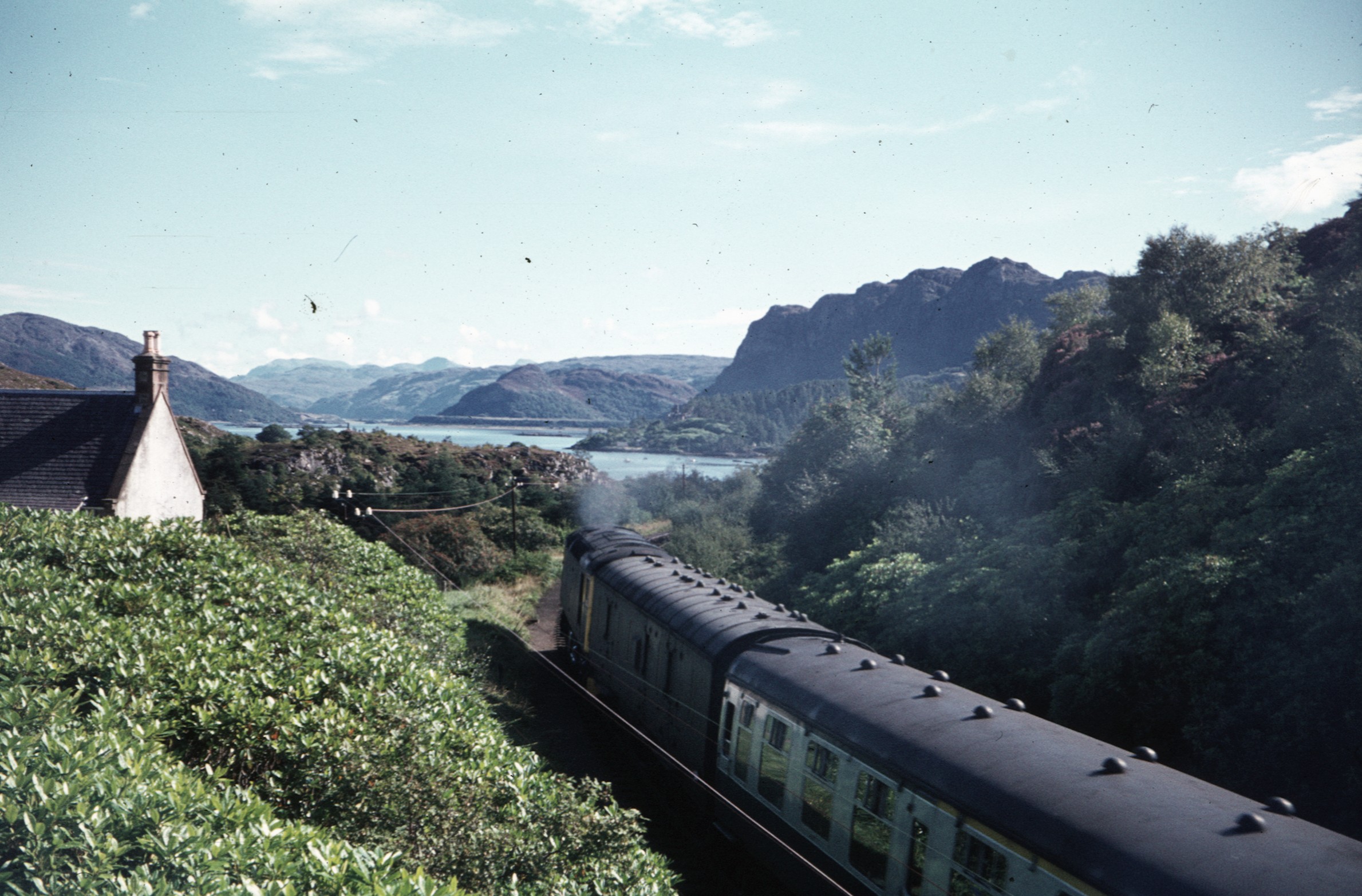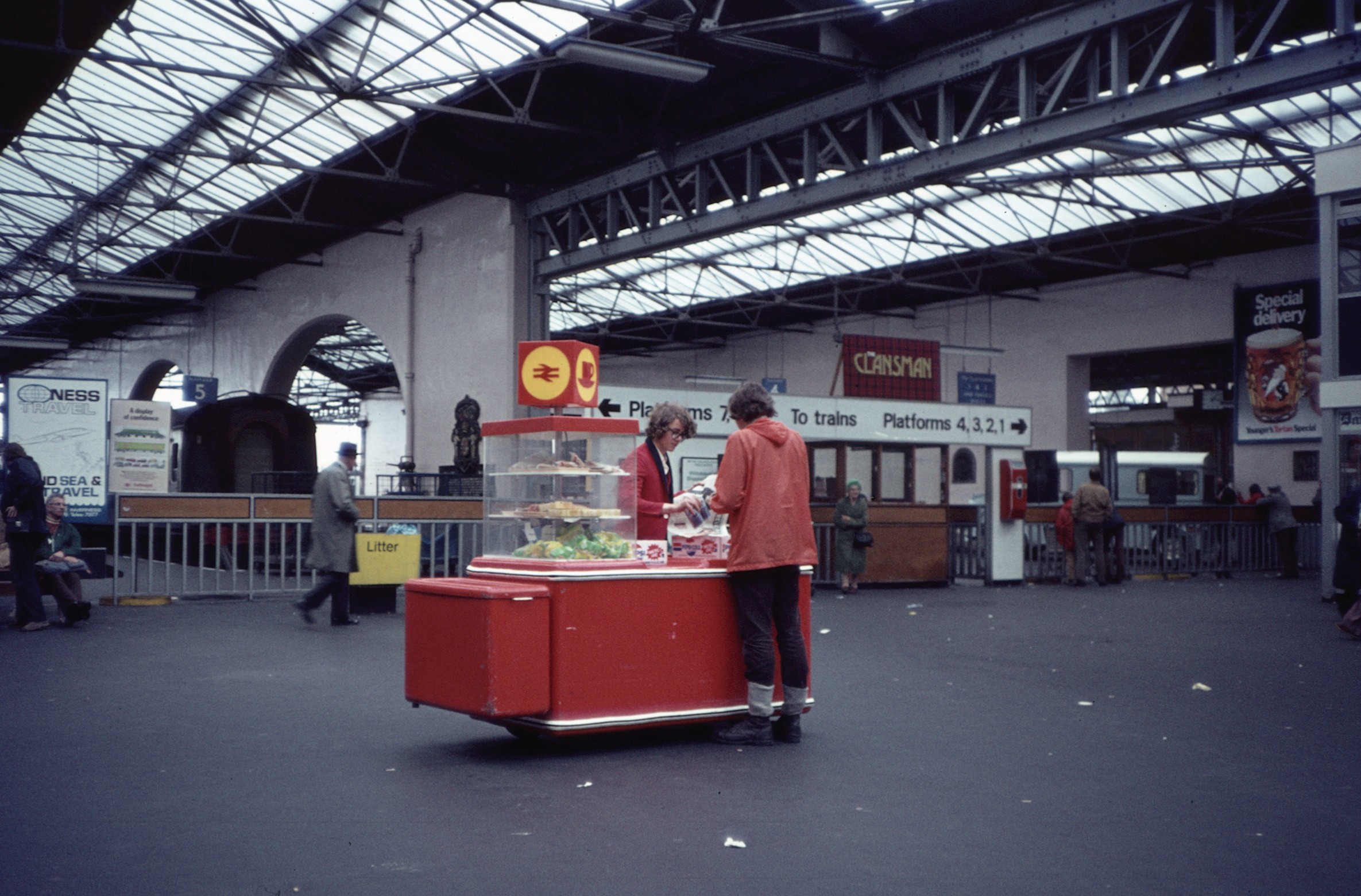 Most of these shots were taken retreating from a walking holiday in the West Highlands with some university friends. I say ‘retreat’ as we were forced to cut short our holiday after it rained for 24 hours solid (sounds familiar, doesn’t it – this is what usually happens in Scotland), and our tents were soaked through. Being a careful backpacker, I was the only one with a dry set of clothes in plastic bags…. So we took the train back to Edinburgh (via Glasgow) and spent longer than we expected at the Edinburgh Festival. The bus in the photo is, I think, parked to put the mail on the platform by collection by the soon to arrive train. The last photo is from an earlier walking holiday – an idyllic Plockton, on the west coast, in rather better weather in 1973.