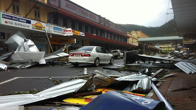 According to residents, Tully was “…a scene of mass devastation”. An unknown number of homes were completely destroyed as intense winds, estimated at 300 km/h (190 mph), battered the area. Many other homes not destroyed sustained severe façade and or roof damage. As daybreak came, reports from the town stated that about 90 per cent of the structures along the main avenue sustained extensive damage.