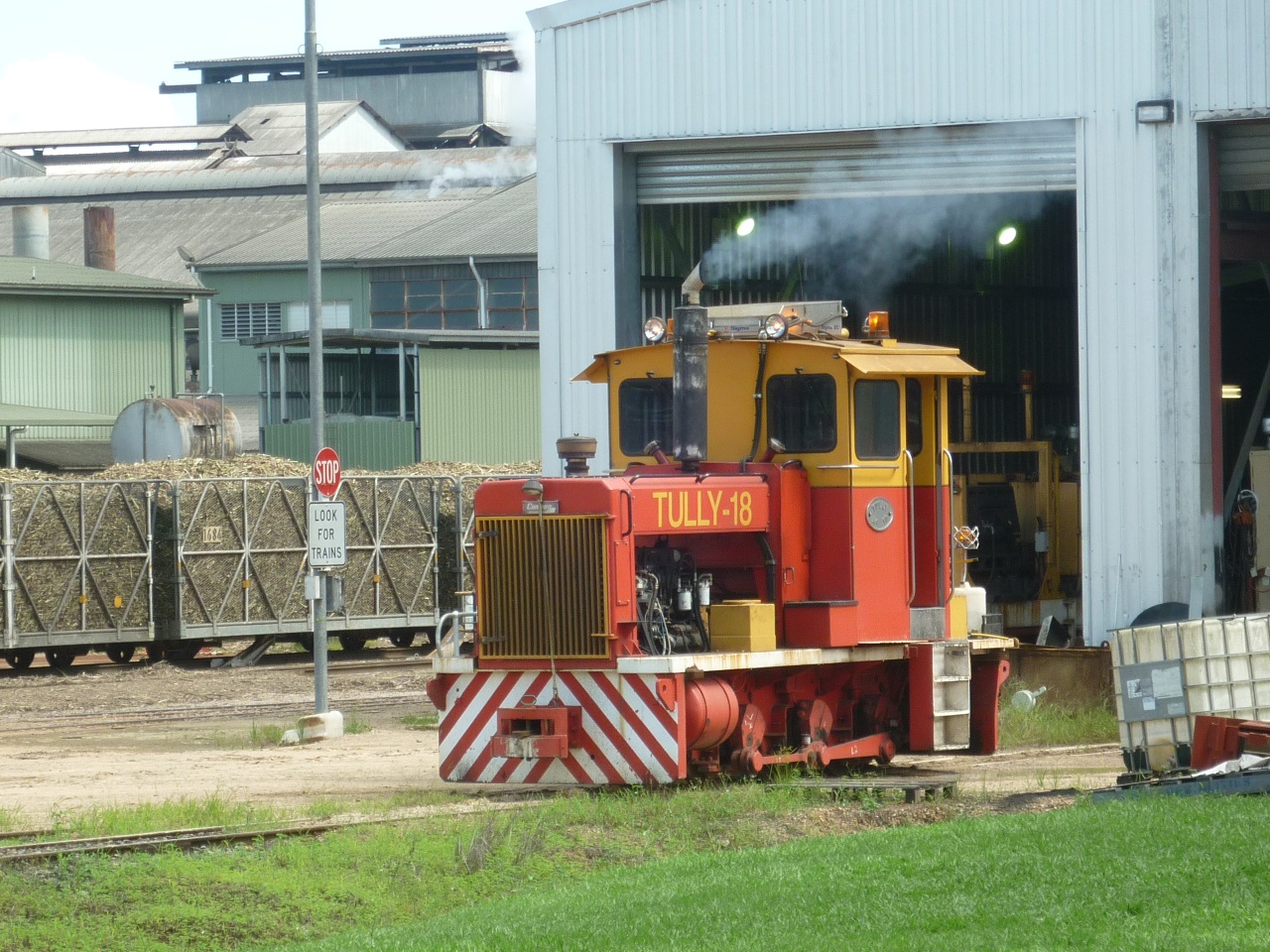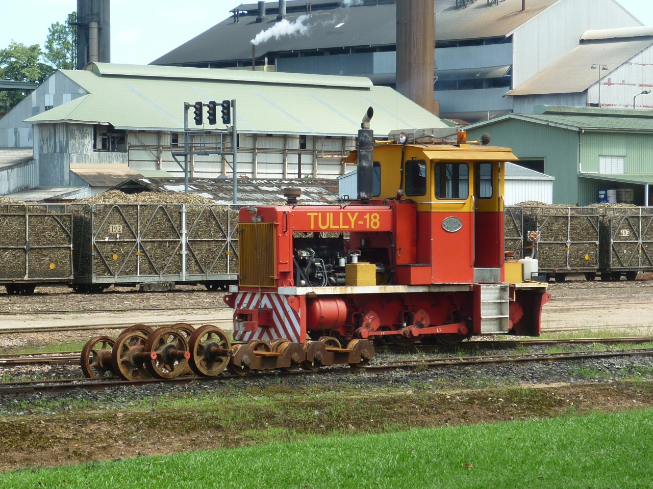 Back to Australia and North Queensland for this post. A day exploring inland, more or less at random, discovered the sugar cane processing plant at Tully (well, actually, I worked out where it was, and found it by ‘accident’). The company website describes the rail system and process as follows: