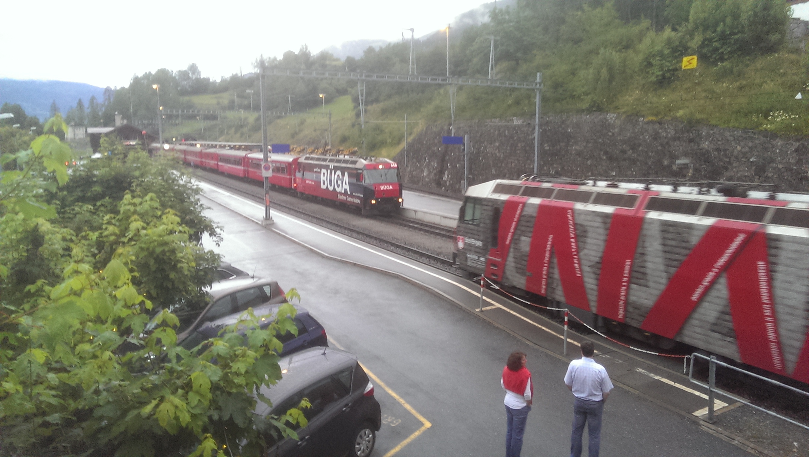 Holiday slowly coming to an end. That’s the Hotel we are staying in at the end of the platform. The double head freight has just turned up.