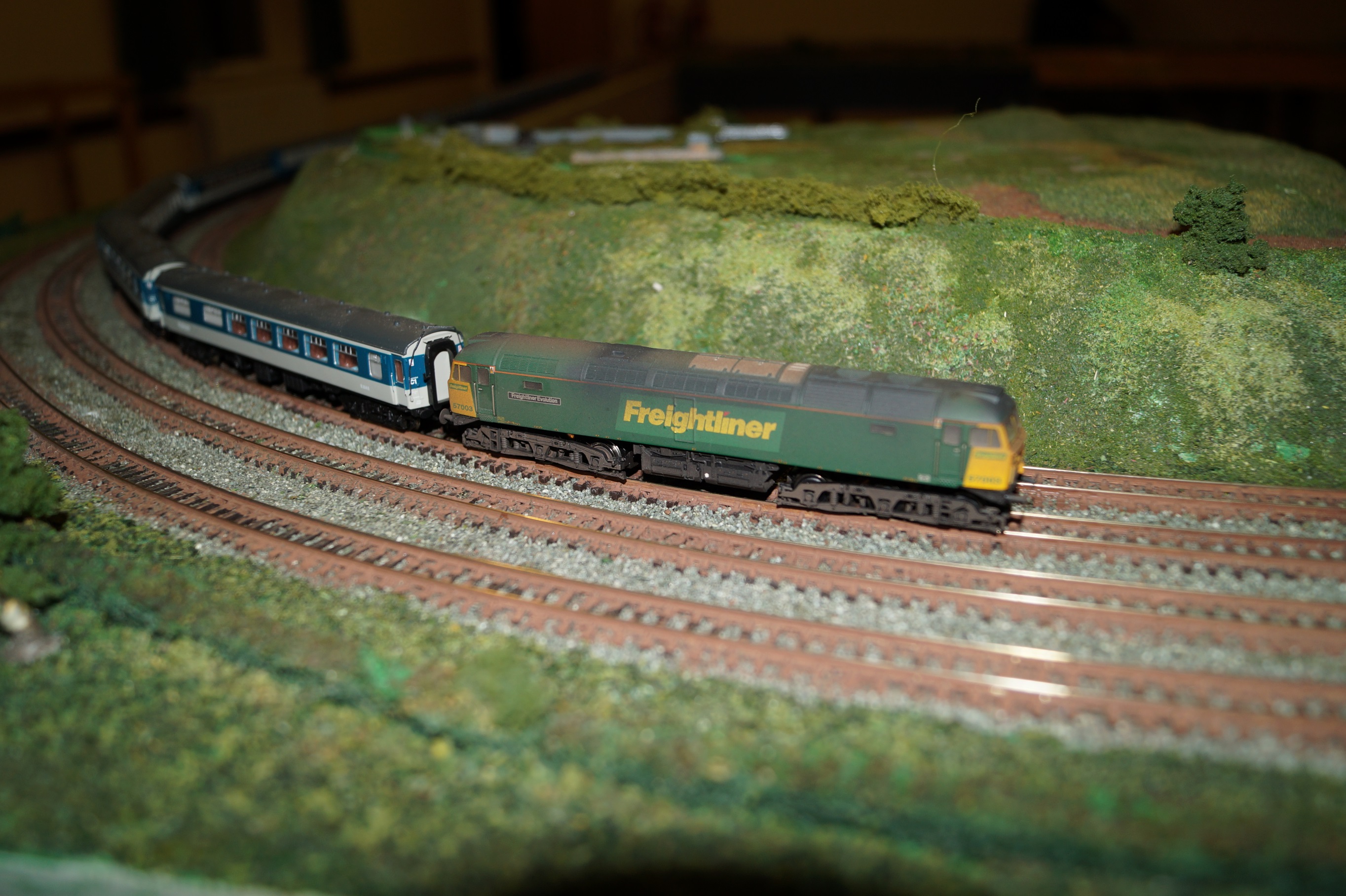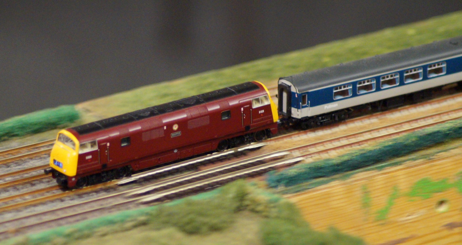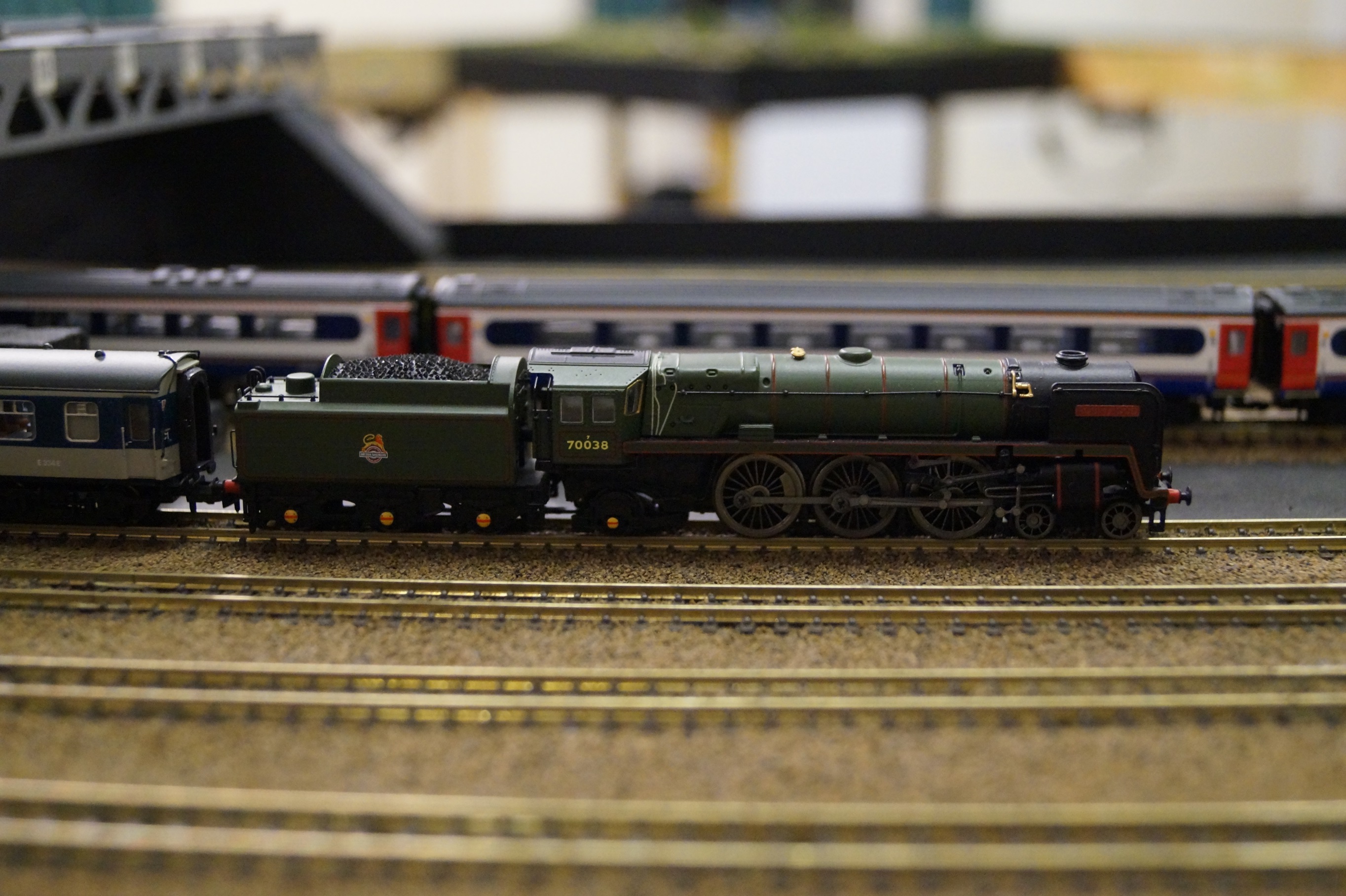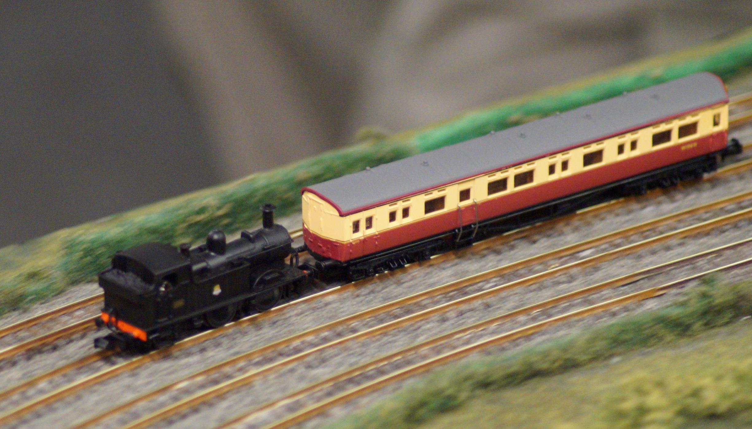 Lots of new trains on the circuit tonight. I ran a ‘new’ second-hand Farish O8 shunter in early BR black that I couldn’t resist. Next came a test run of my new 5-BEL EMU. The Brighton Belle looks gorgeous and runs very well. The maximum speed is quite low, but its a good scale speed, and the unit it kept up a stately progress around the circuit – as befits the grand old lady of luxury trains.