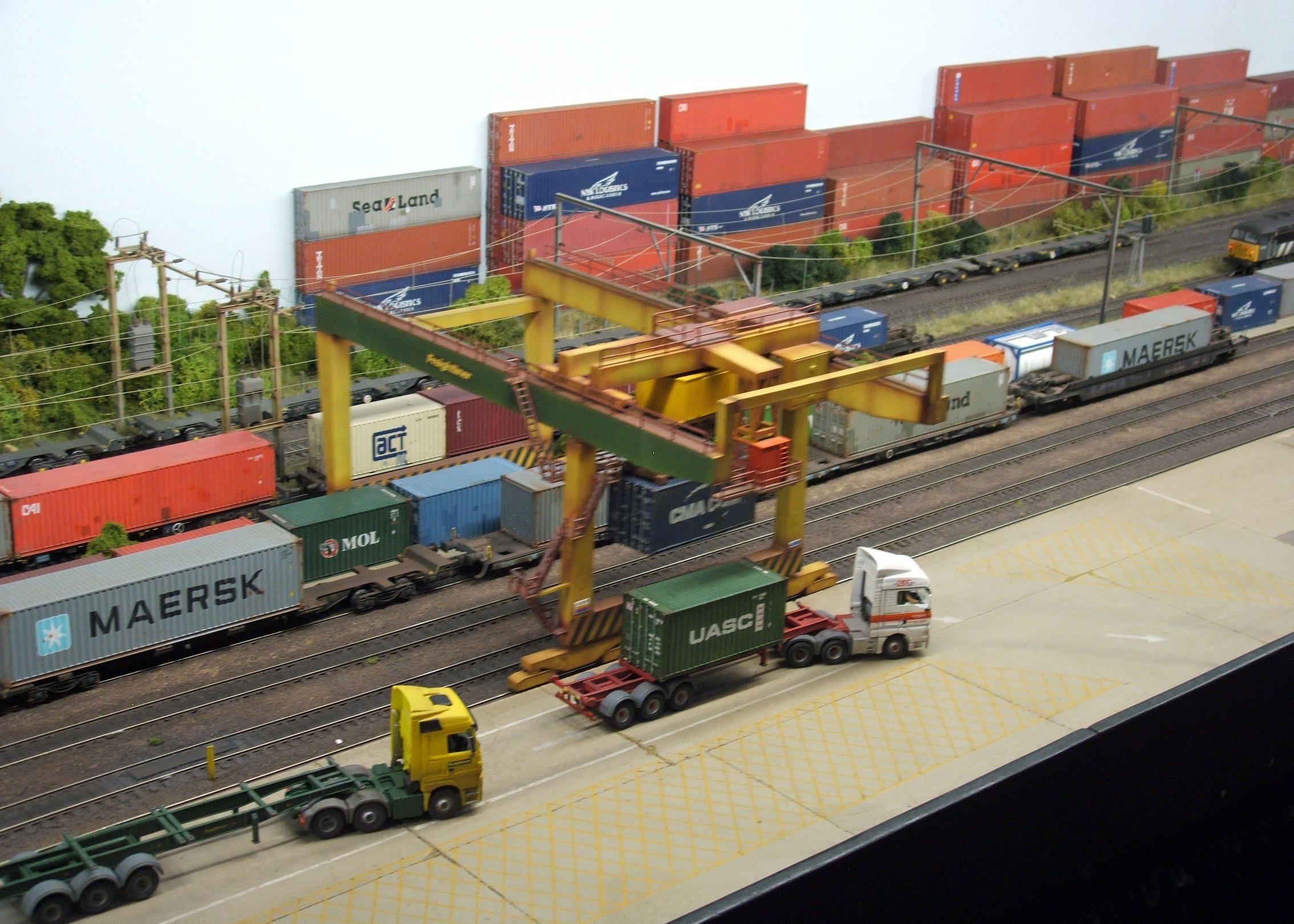 A pleasant surprise at Eurospoor was the visiting UK based layouts. I had seen recently seen two of these at UK shows, but it was good to see them flying the flag for UK layouts. Firstly ‘Warren Lane’. You’d think that a layout that just shuffled container wagons around would be pretty boring. But not when there is a working travelling crane loading and unloading the container wagons. And when one looks at the trains more closely, there are so many different types of wagon and indeed container in use.