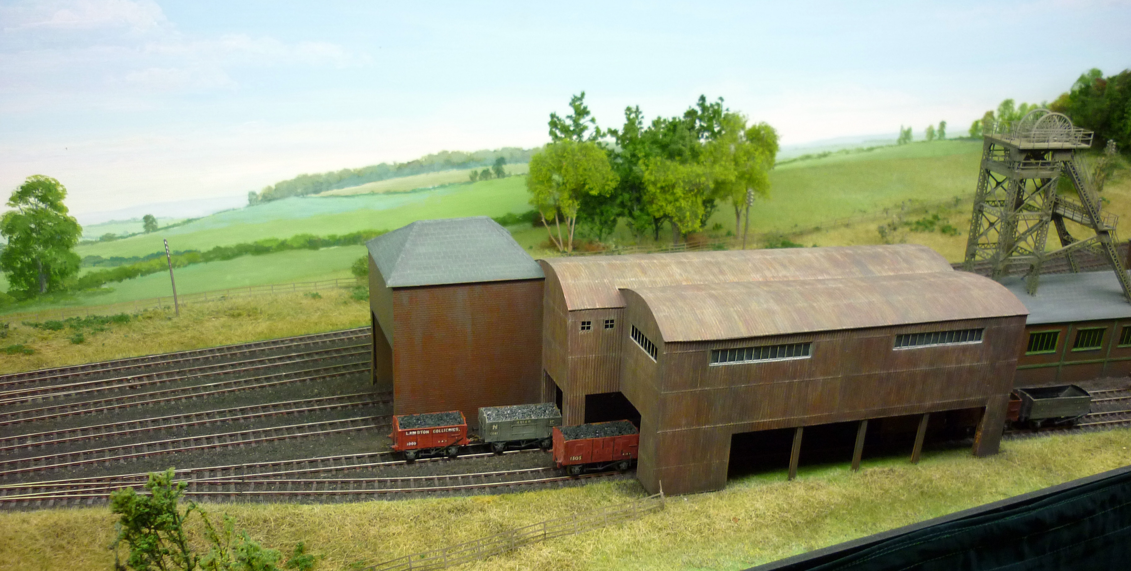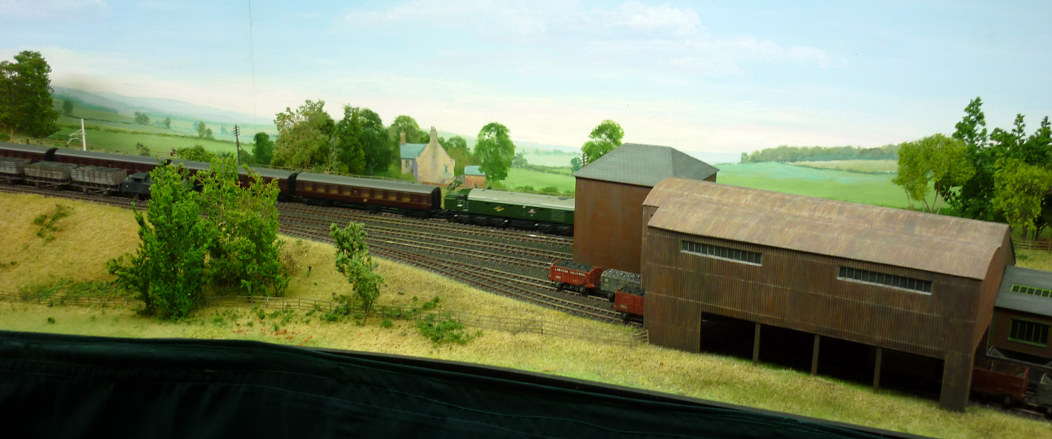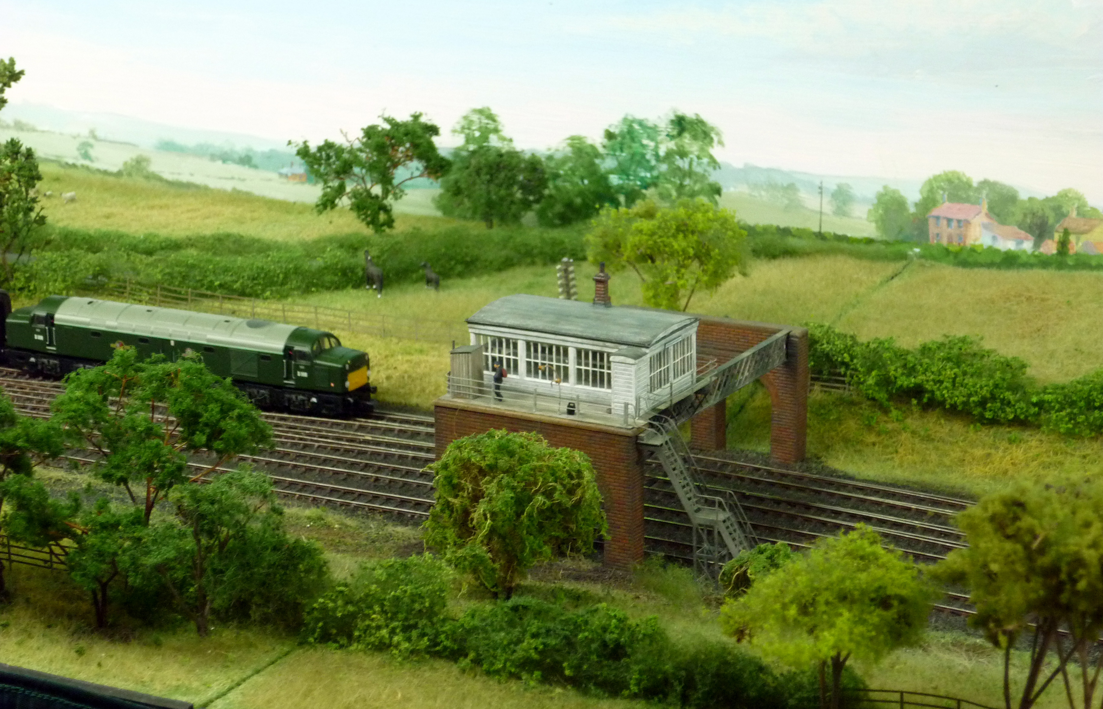 Then you look a little closer, and realise just how good and detailed the modelling is. Below are the level crossing, the colliery buildings, and the distinctive North Eastern Railway over track signal cabin. Whilst I was there, most trains running were of British Railways green diesel vintage. They can take the layout back into steam days, but for a two day exhibition, a lot of the donkey work was being done by Farish diesels converted to finescale standards.