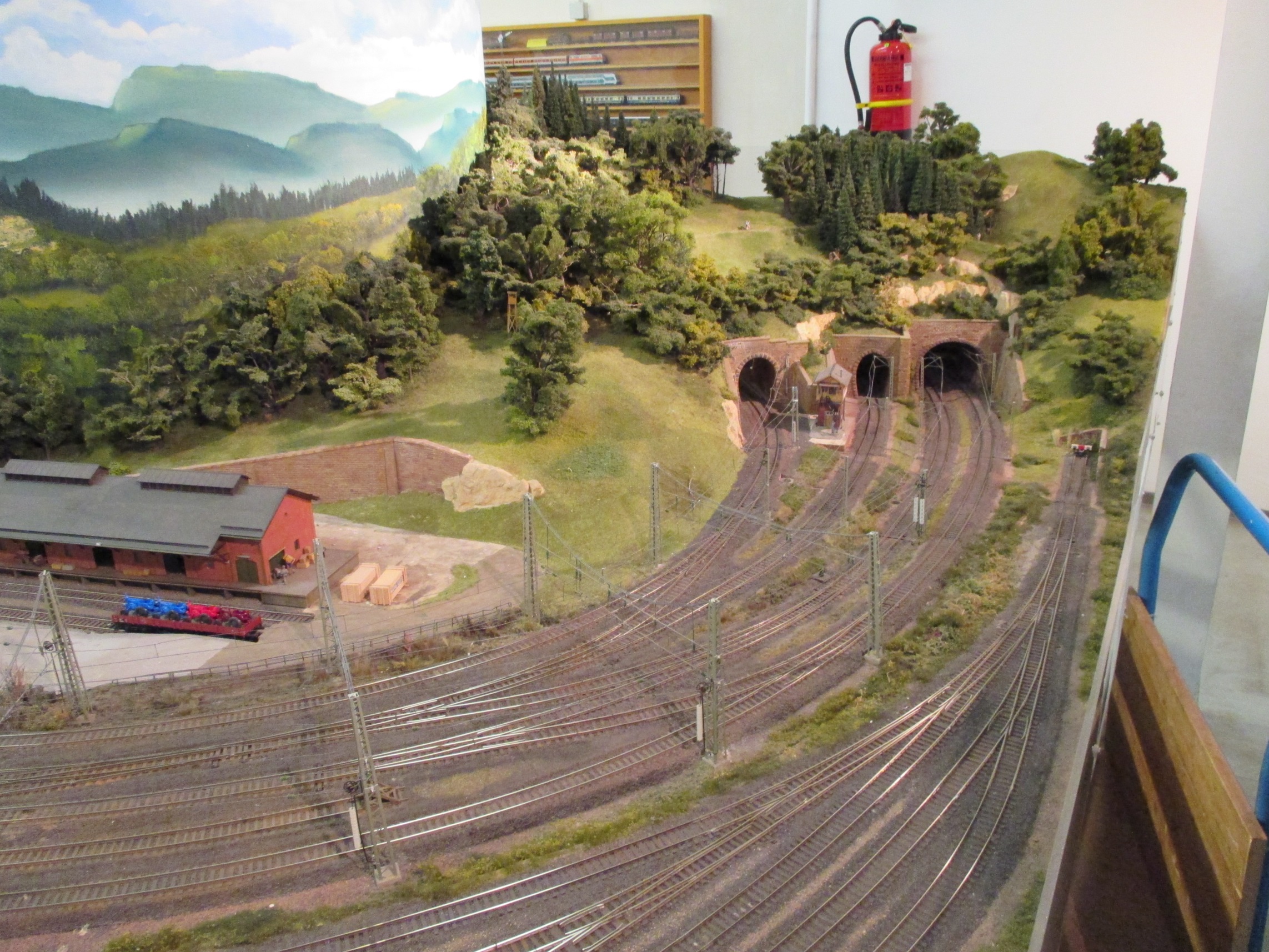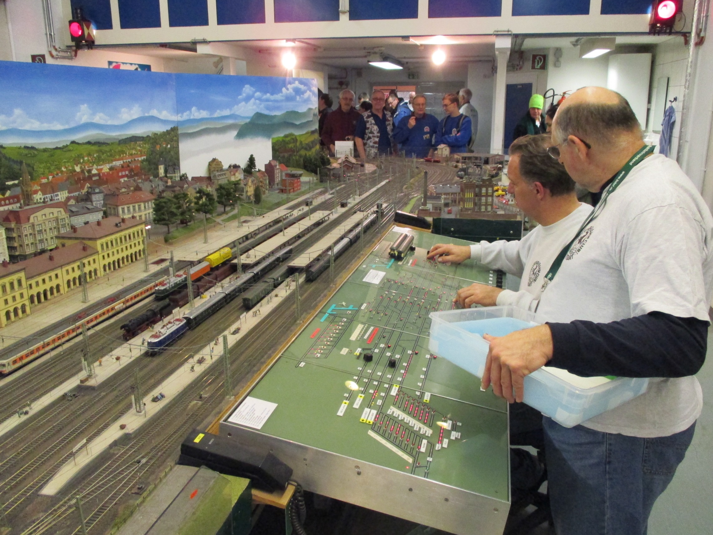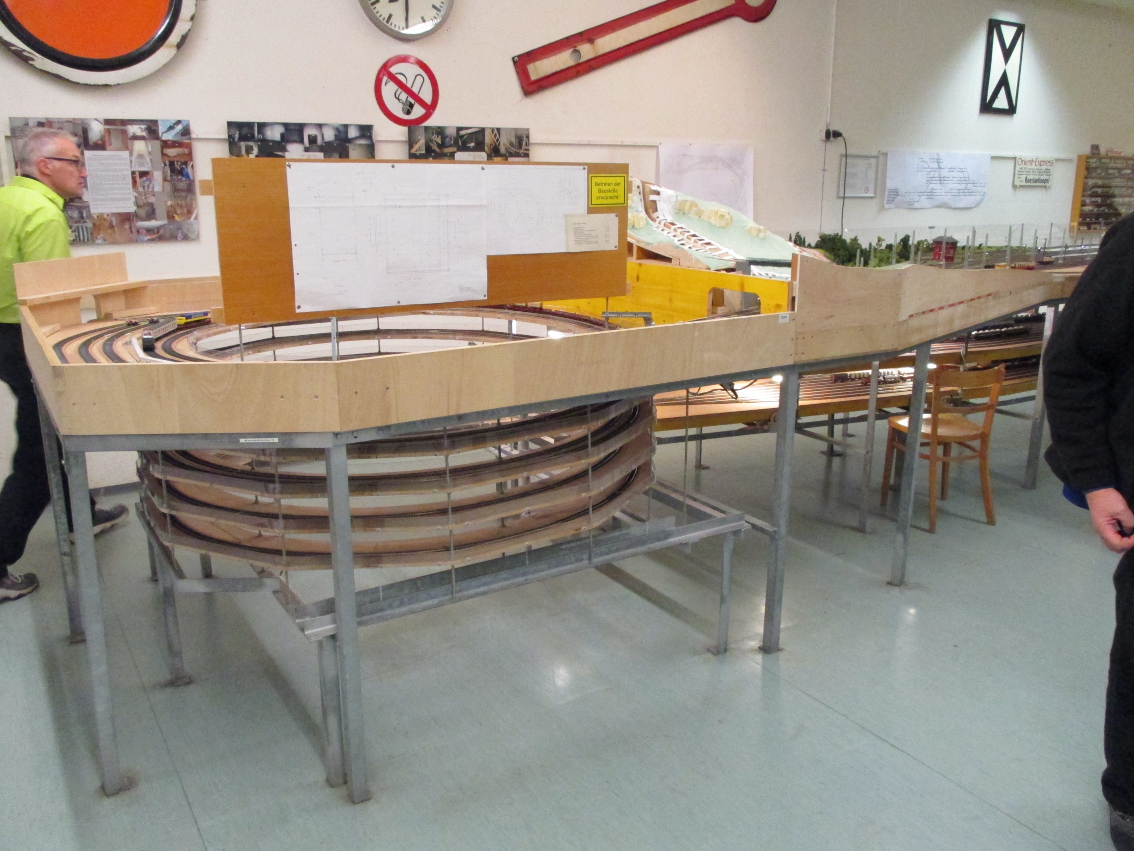 We had been invited to visit a Stuttgart model railway club, the Modelleisenbahn Stuttgart. Fortunately, our German friends do abbreviation – MECS is a lot less of a mouthful! On arriving at the appropriate S-Bahn station, one follows an exit corridor, and enters this rather anonymous door. Once inside, there is an extensive clubroom, in the area above the station escalators and tracks.