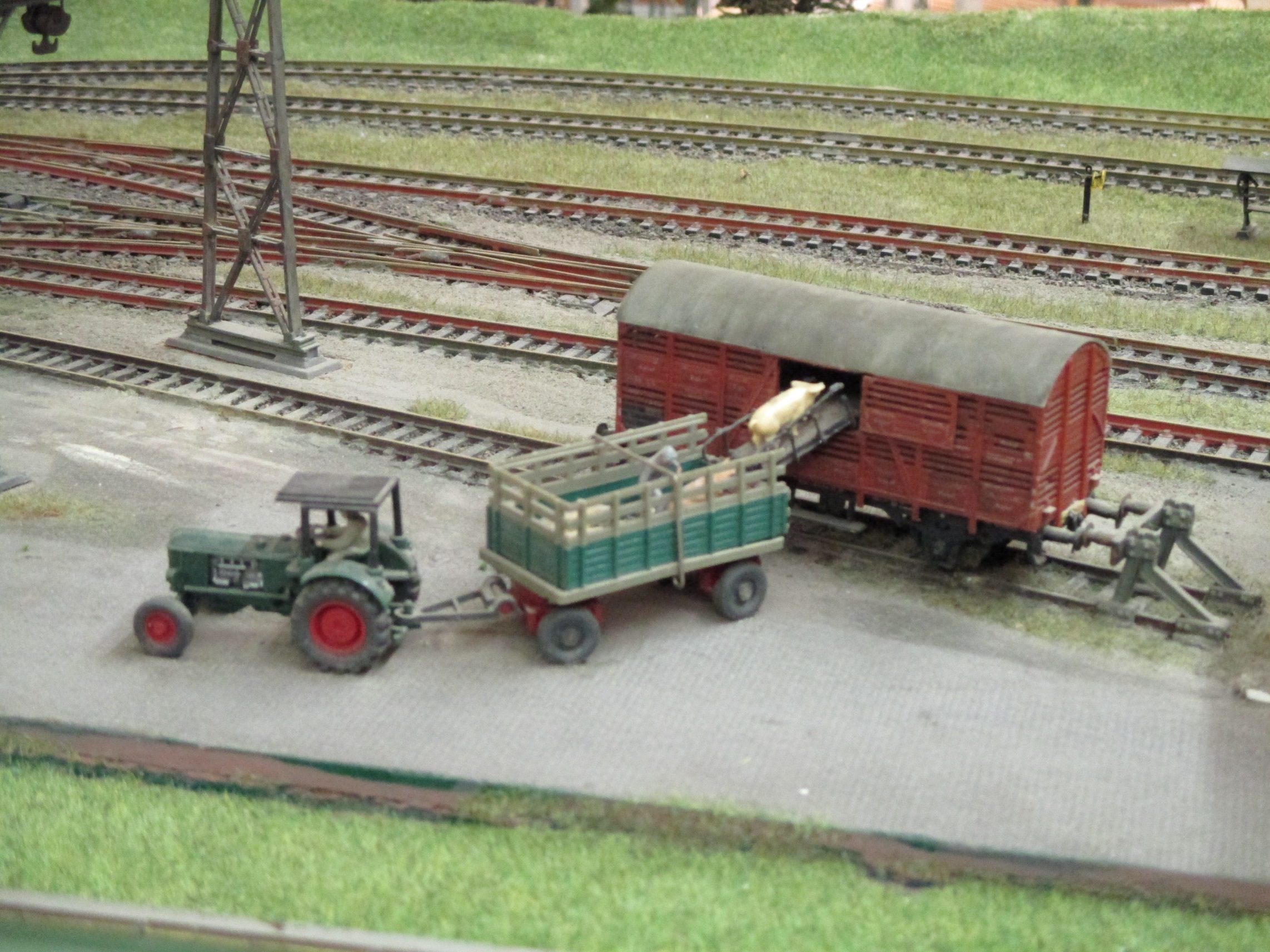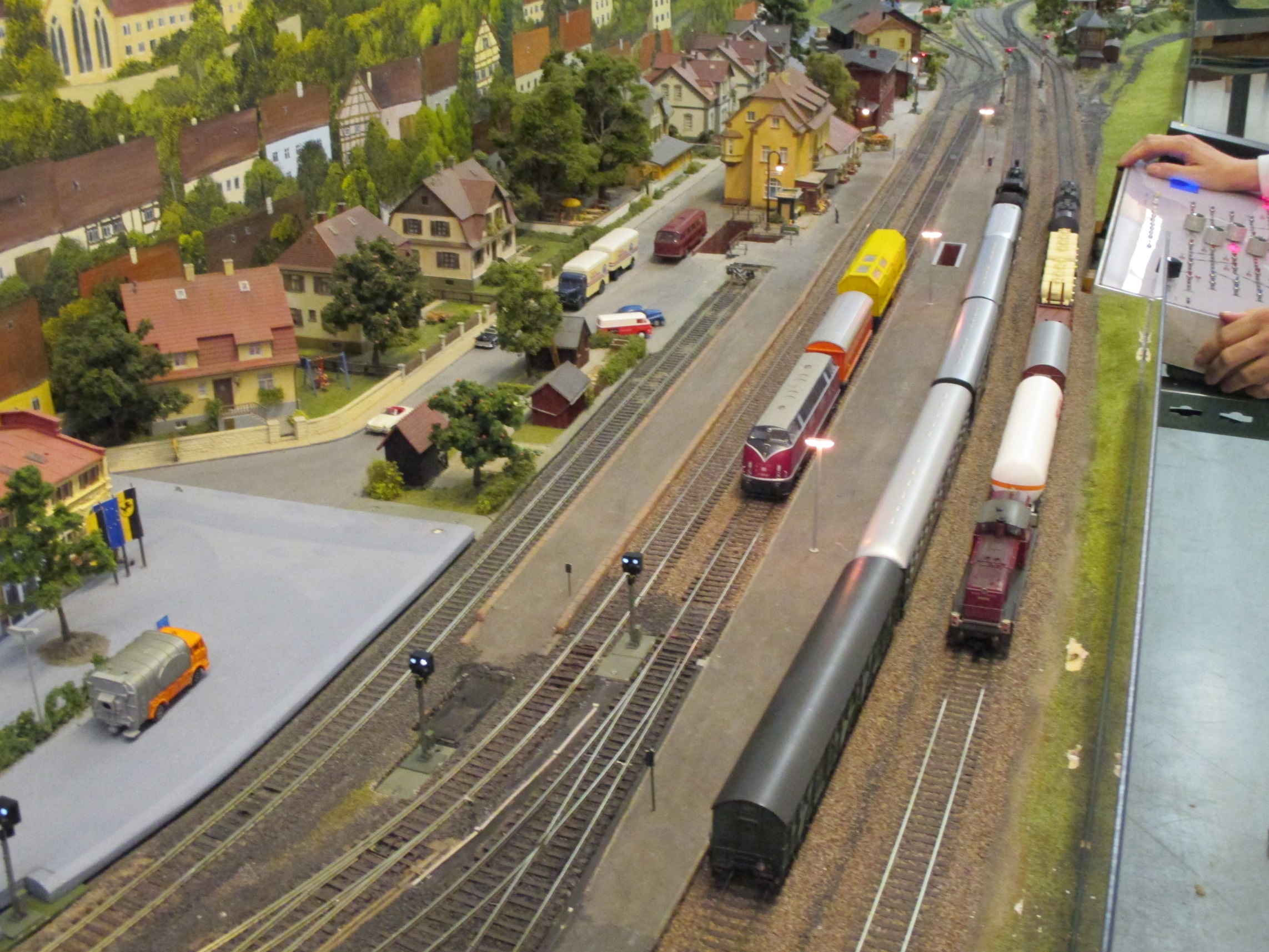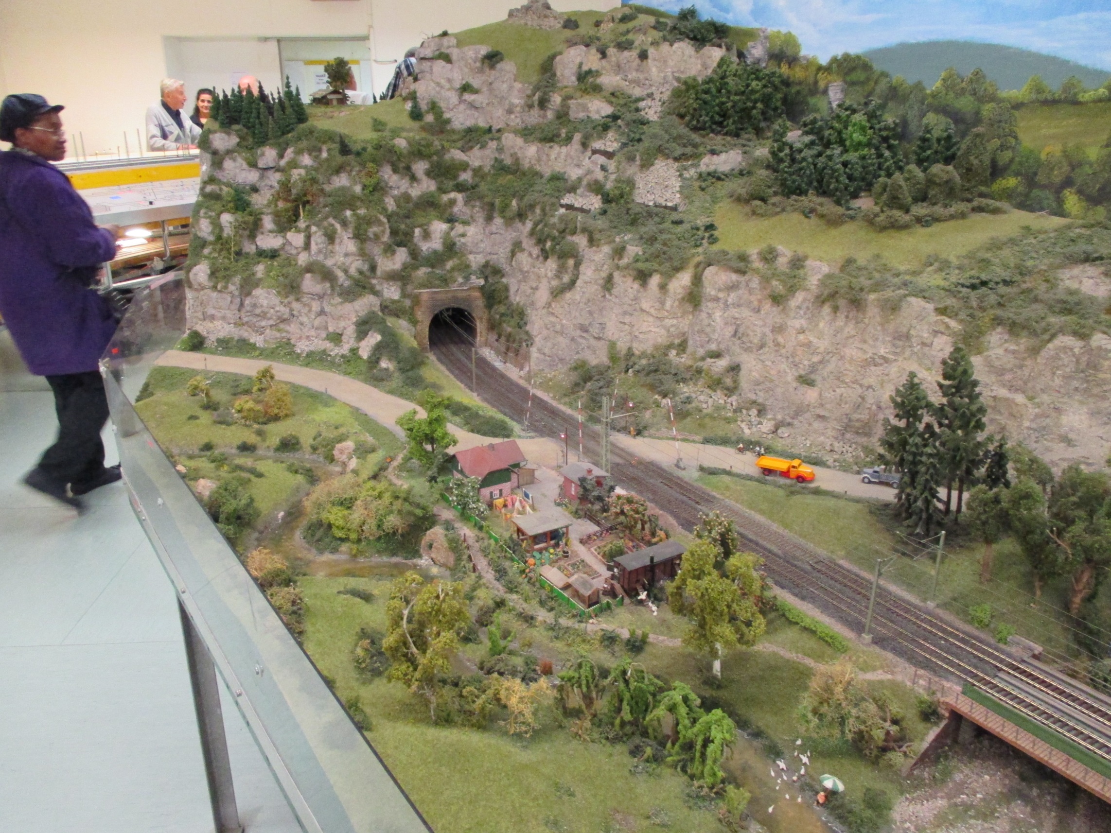 Whilst visiting, we were well looked after by MECS and fed and watered in a small club dining room. Although the layout was HO, there were several tables of N gauge stock for sale. I resisted a ‘Flying Hamburger’, despite a very good price (I do this every year at Stuttgart – they are very attractive early DMU’s, but there is no way I need one). Derek and Allan were less restrained and waded in, and Allan spotted the Swiss luggage van that he has been hunting for two or three years for President Martin. This was snaffled very quickly, and made a good evening even better. We were amused to see one of the traders from the Messe show buying up some stock, no doubt for sale at a profit the next day.