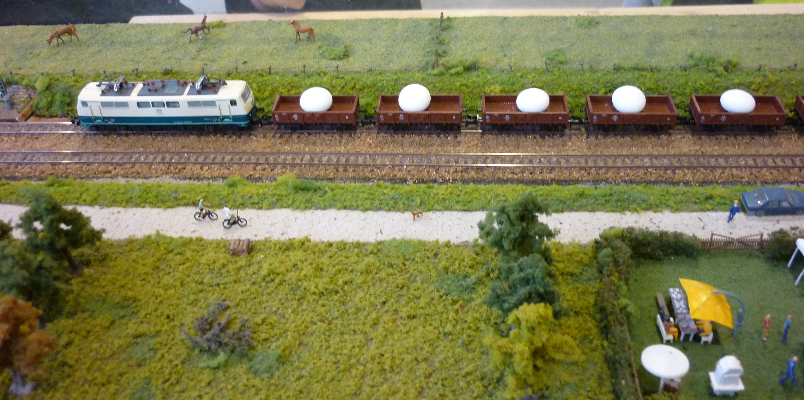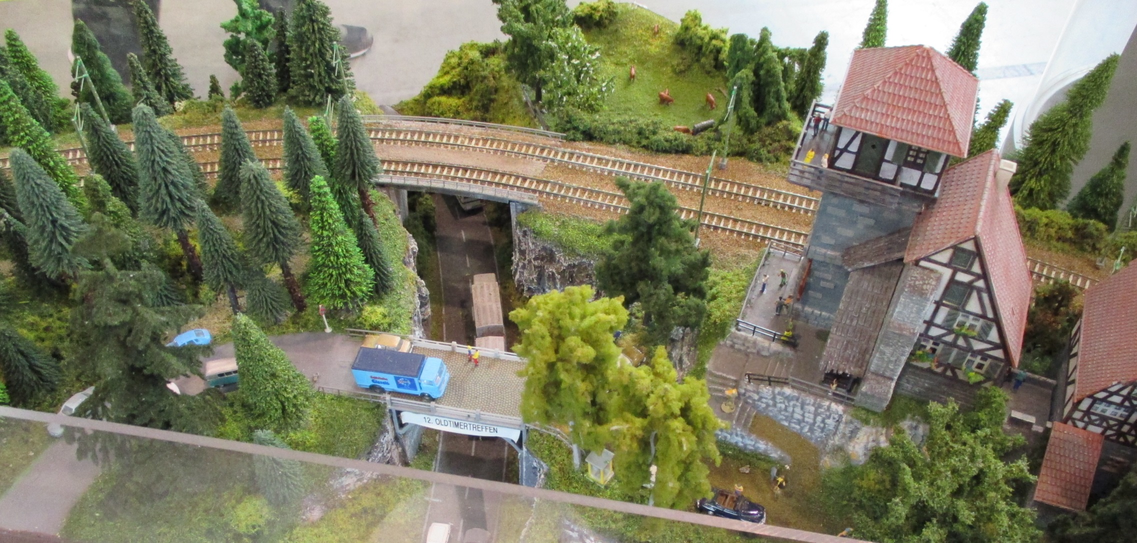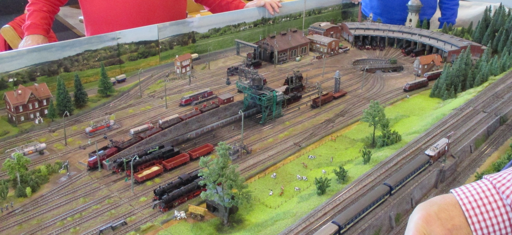 This flying junction wouldn’t fit in so well at home. The young operators are looking for the next train. Behind you…..