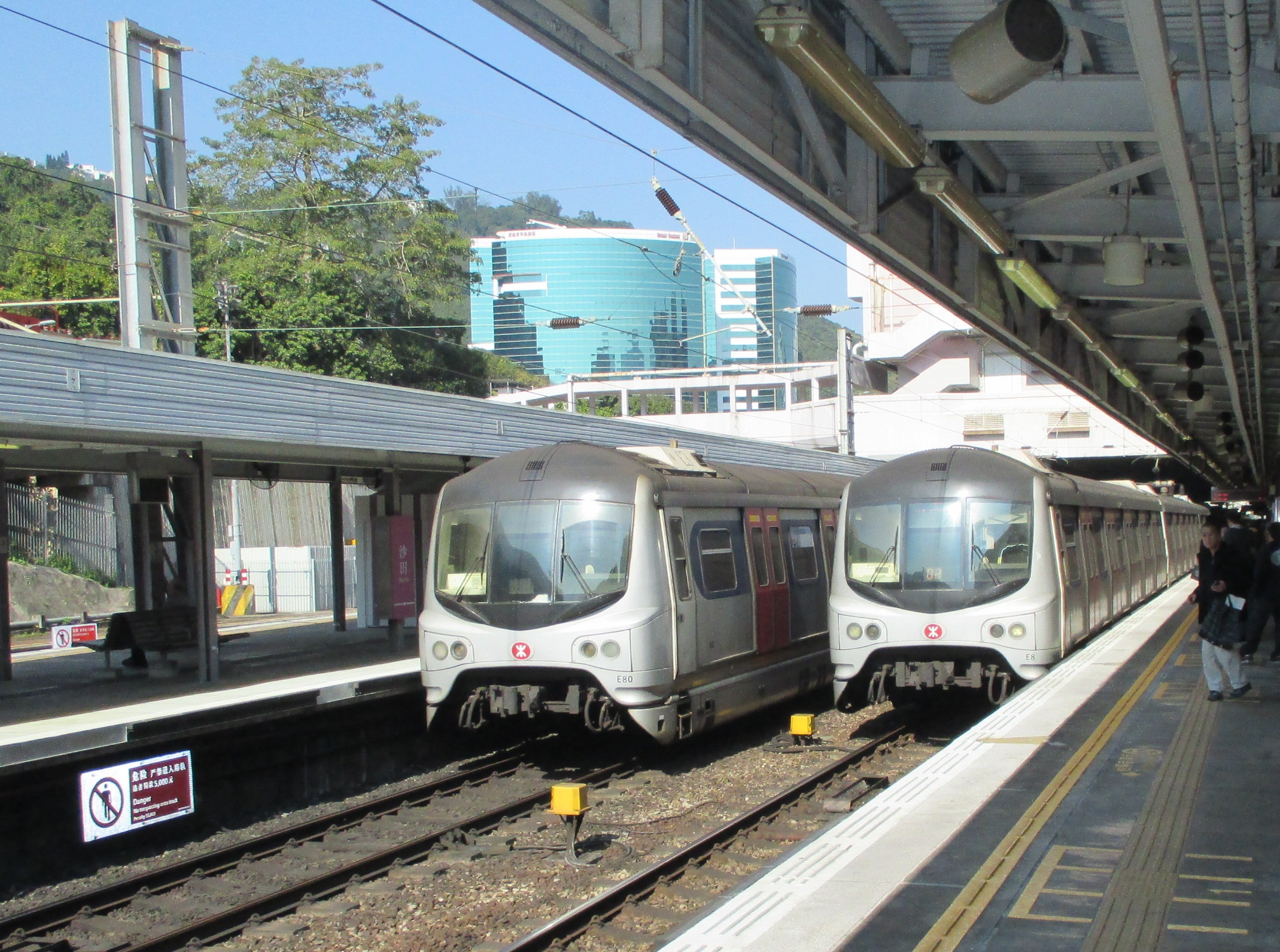 I spent some time on the station, and took a few pictures of two generations of multiple units in the station. These trains only go up to Lo Wu and the old HK-China border. It is now the HK China- Guandong China border. It was interesting to compare these modern units with the old first generation electrics that I rode in the 1980’s and 1990’s. I had a cab ride in one of these, all the way to Mong Kok to Lo Wu – almost all of the HK section of the KCR. I had hoped to get a look at some of the cross-border through trains, too, but managed to time things badly and was on a train each time one went through. I did, though, see the prototype of my Kato model of the double-deck push-pull service, with a loco at each end.