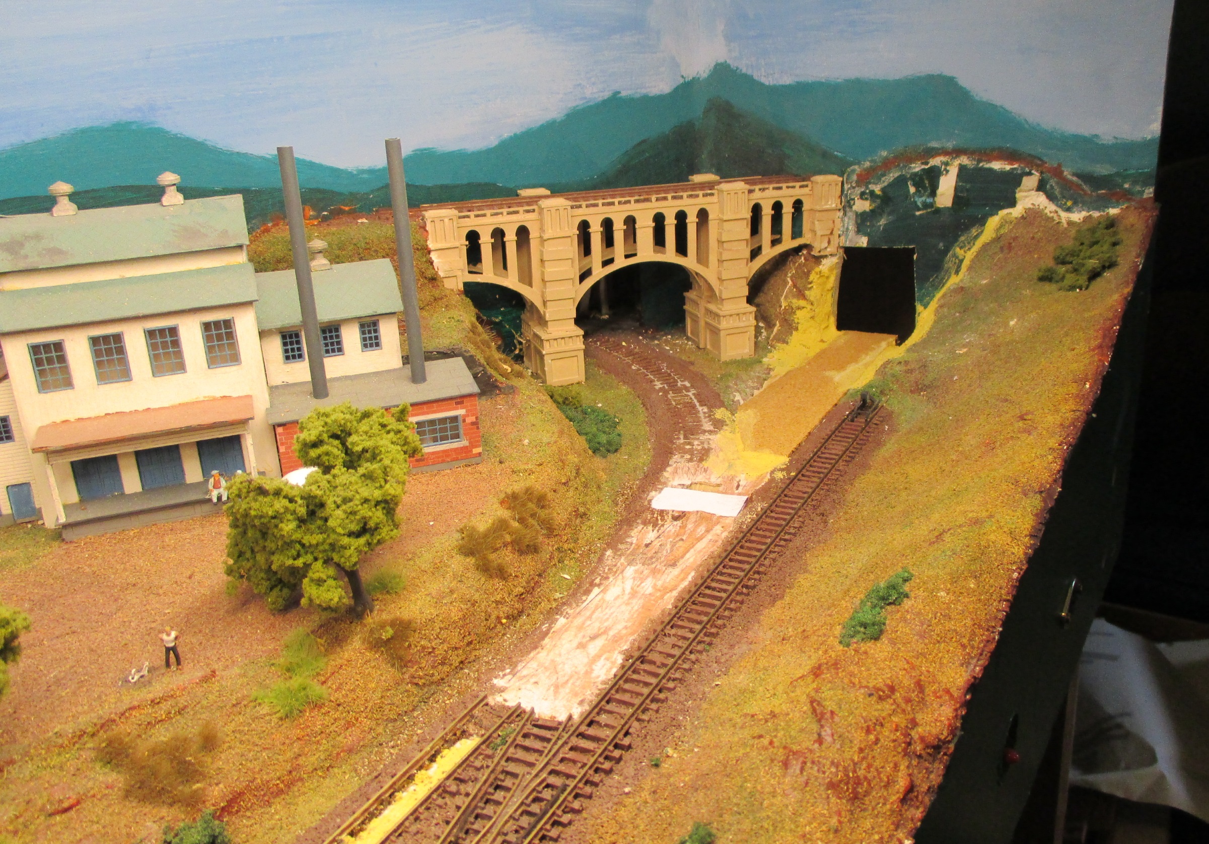 Progress after a couple of days is shown below. The new track bed and the filling to repair the scenery have been added. The new exit and the non-sequitur with the viaduct will be hidden by vegetation and trees on the bank to the right. It shouldn’t be too visible from normal viewing angles. Next jobs are to paint out the new bits, put some scenery on the old main line, and then lay the track. The same point motor can be used, just moved a inch or so. And two wires are needed for power. The challenge will come with the fiddle yard design. Do I use points, the cassettes left over from a previous try, or build a new train turntable? I’m not sure at the moment!