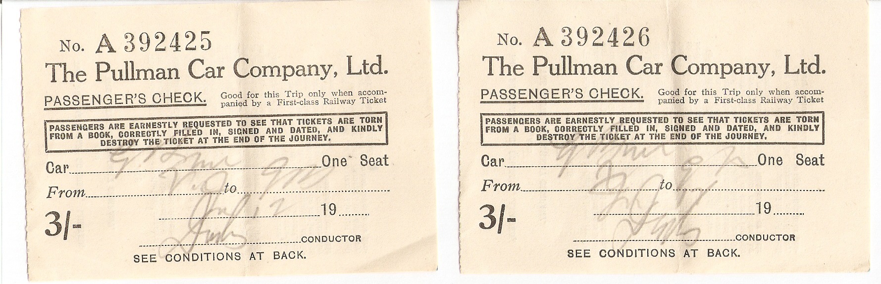 And my Dad must have really splashed out – there are two Pullman car tickets – and for the even greater fee of 3 shillings, 15p, each. Note the request on the Pullman tickets for the passenger to ‘destroy the ticket at the end of the journey. This obviously didn’t happen and they were kept as a souvenir.
