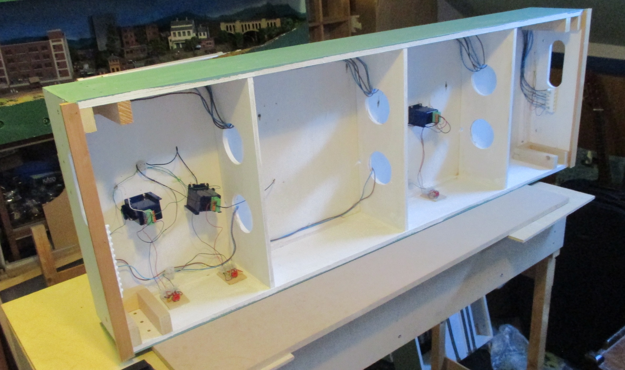Since my last modules post, I have actually made steady progress with the layout. First of all, I finished all the wiring for the 1200mm module, and tested all the point motors and track feeds. For this task I used my venerable 42-year old multimeter, made in an electronics practical lesson in my first term at university. It didn’t get used for years, but I’m just realising how useful it really is….