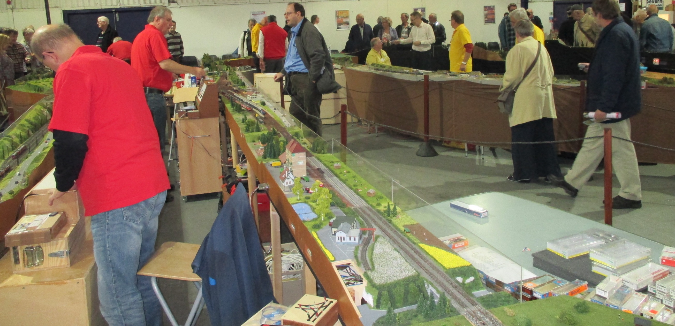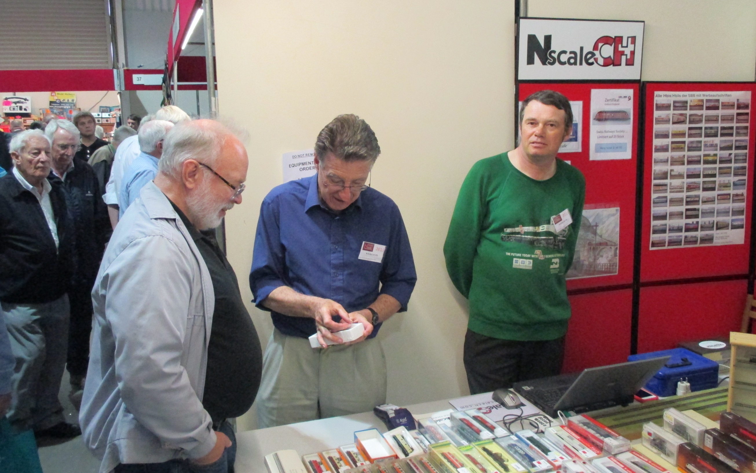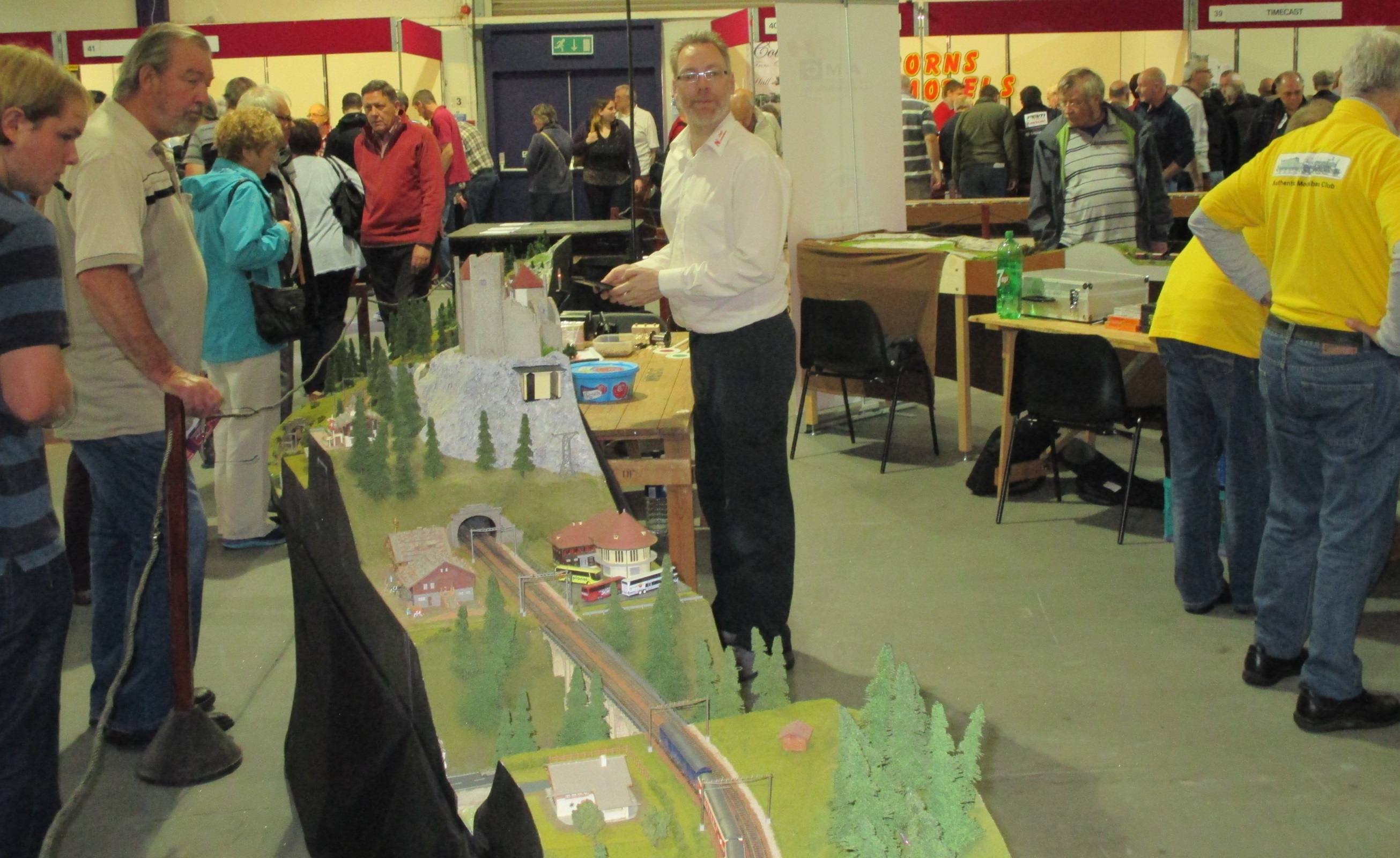 Next stop was NScaleCH, where John and Paul were trying to relieve the punters of money for rare Swiss models. Derek Atfield doesn’t look impressed. John was also helping set up Alpenbahn with Duncan, and I understand that it went together very well this time around, with no major technical problems, or picturesque language.