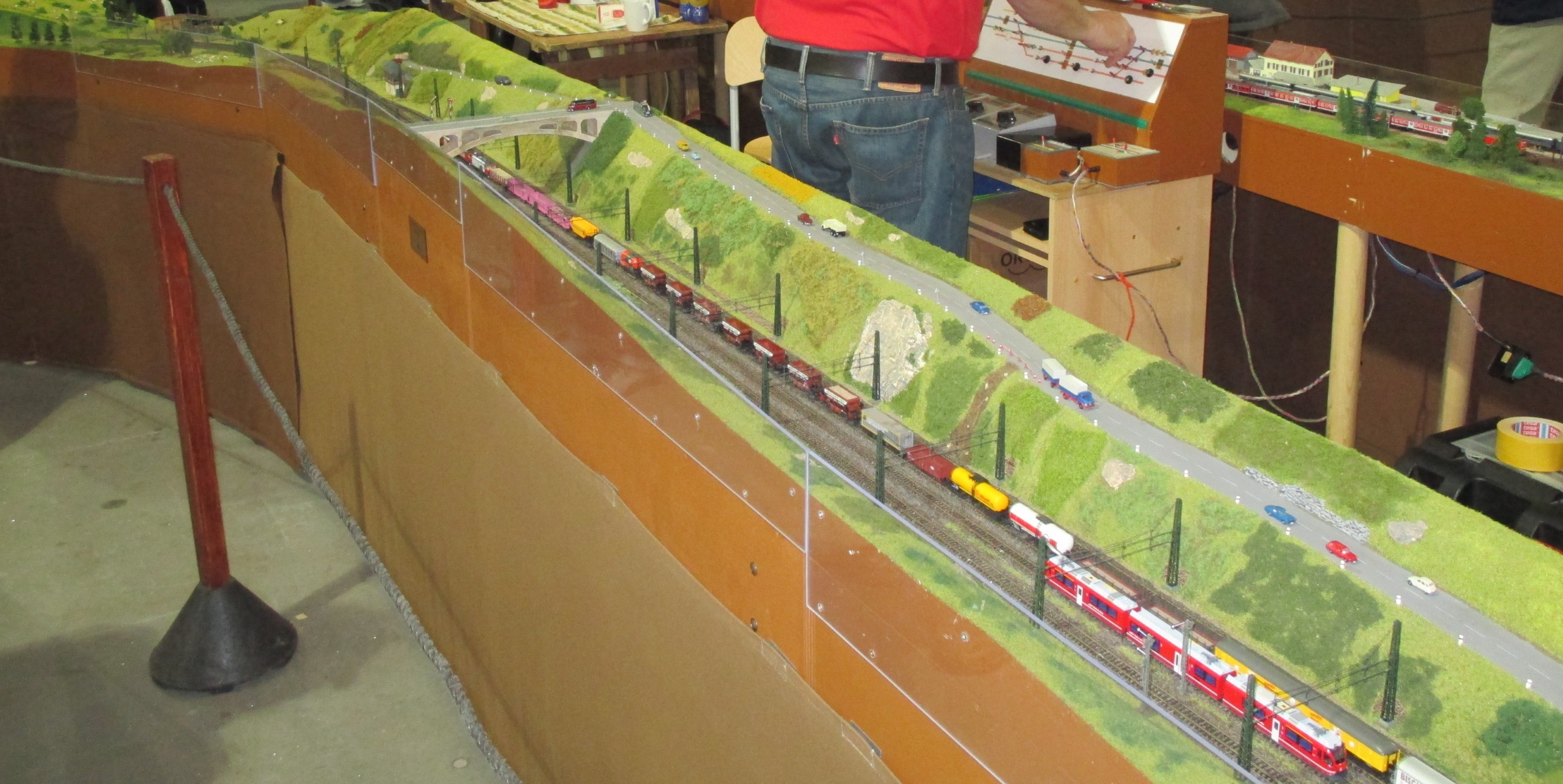 Alpenbahn was connected to a relatively small N-club set up, with groups from just Germany and Austria. Just a little taster of Stuttgart to come in November, but the layout had all the usual characteristics – faster trains catching up with slower ones, lost coaches and trains and a certain amount of détente between the nations. It was good to see a few friends from Stuttgart operating the layout….