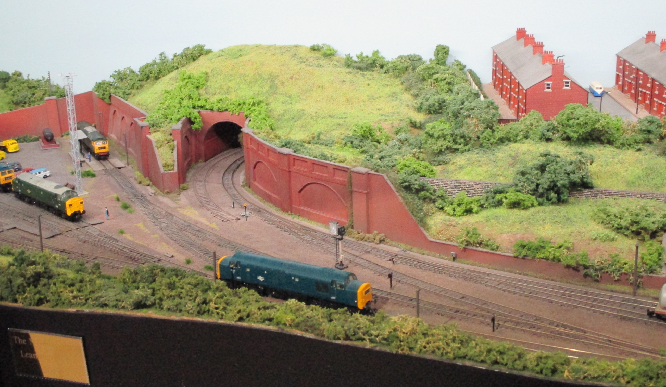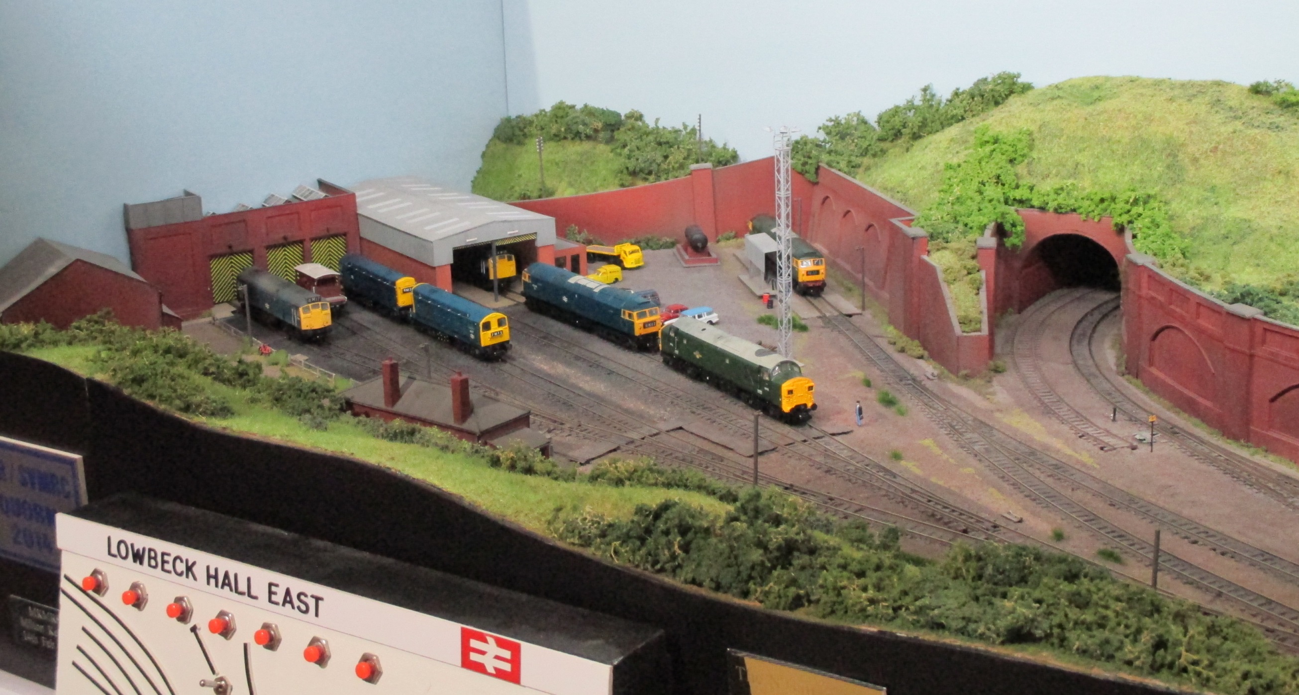 I’ve selected just a few layouts here. The modelling overall was excellent, but the layouts that caught my eye were the ones that were a little different. We start with Lowbeck Hall East, a minimum size layout of a small MPD set in Yorkshire in BR diesel days. I liked the interesting track layout, and the neat rows of terraced houses in the background.