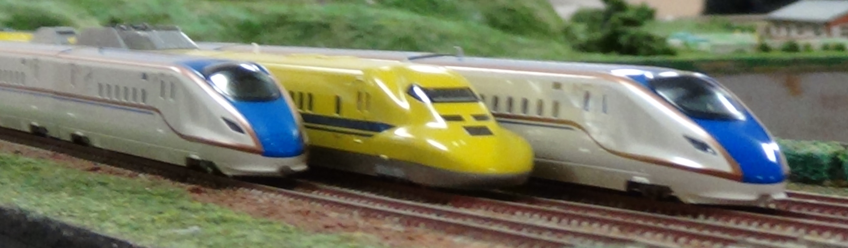 UPDATE. Paul sent me this photo of his two bullet trains and Graham’s canary.
