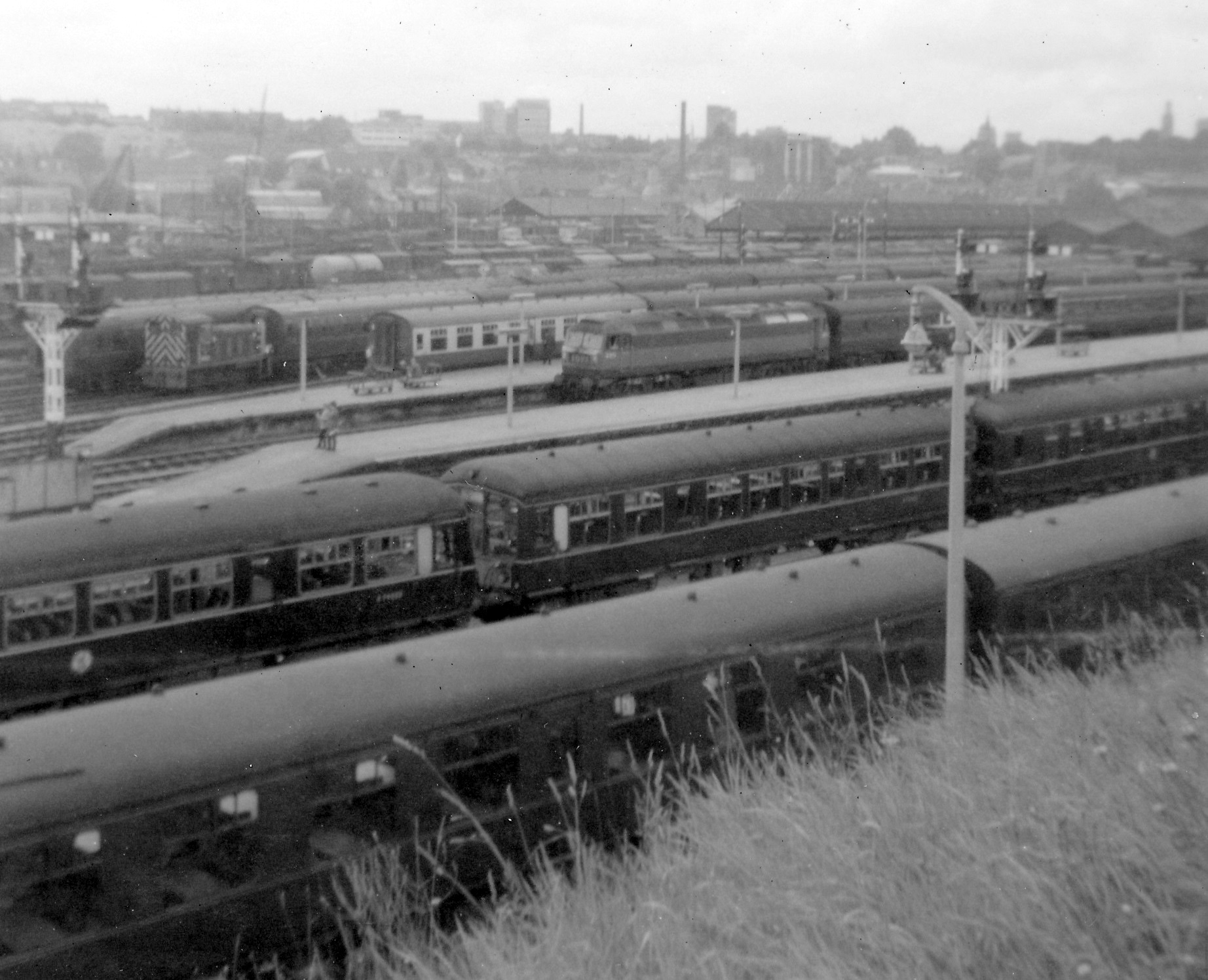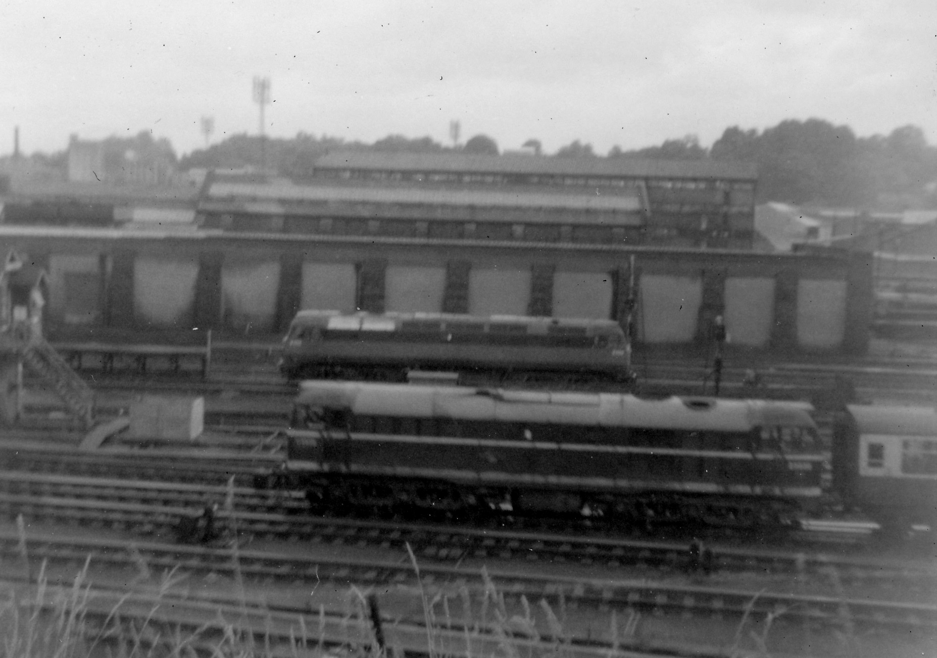 Of poor quality, but with lots of interesting stock and details, are these two pictures of Norwich Thorpe shed and station around 1965. It’s notable just how busy the station is, and there are plenty of new diesels and DMUs on display.