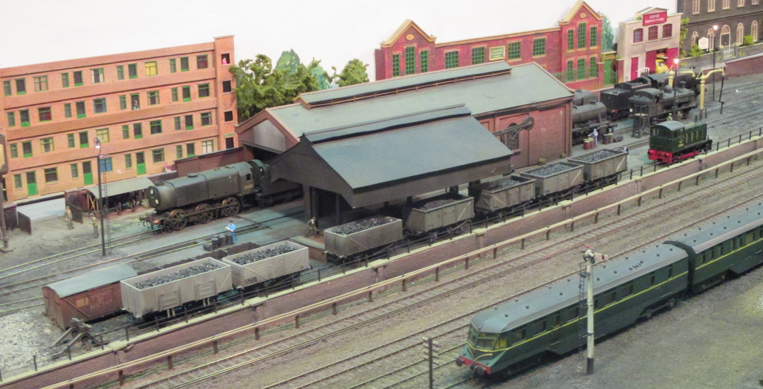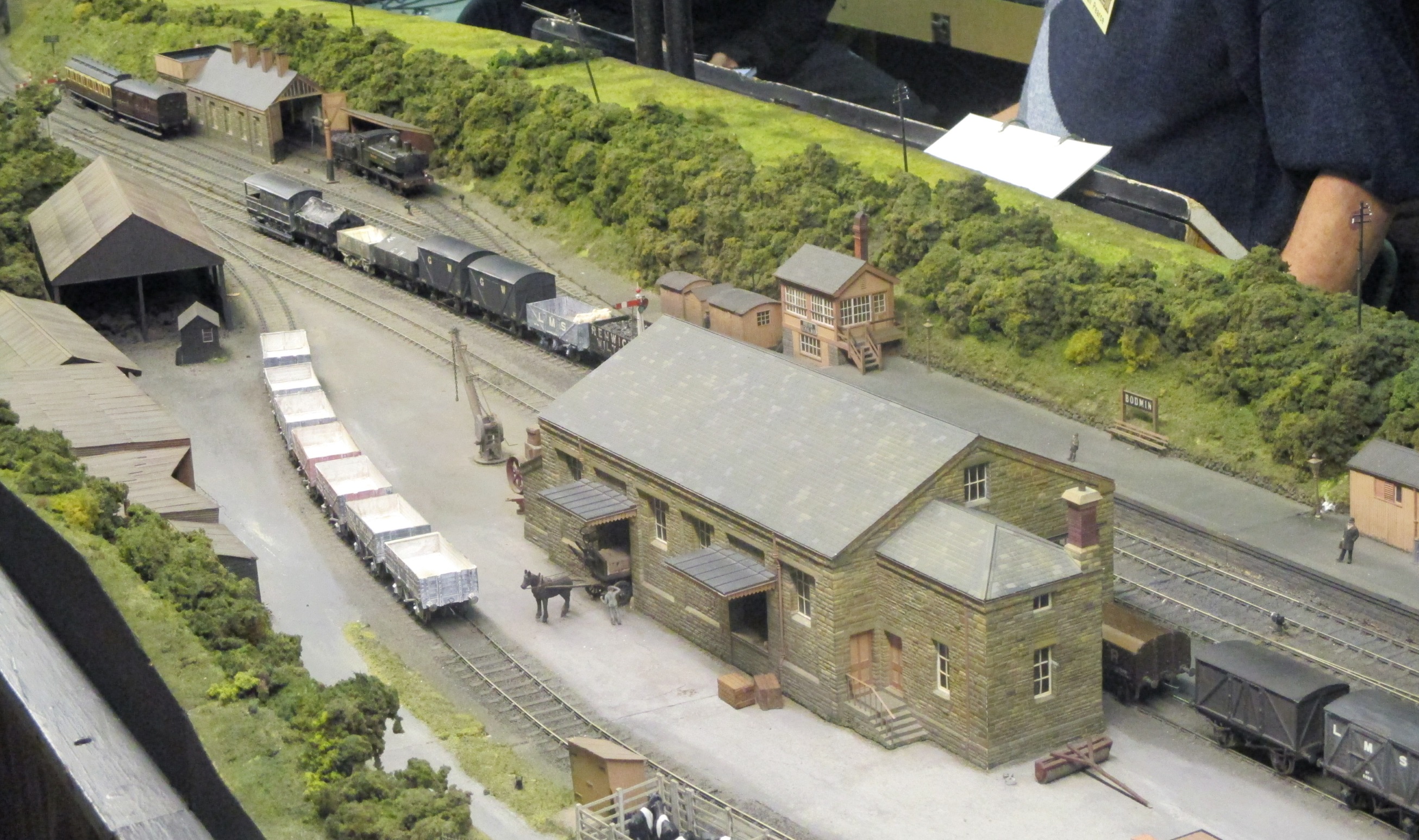 The British (often GWR) branch line terminus has become a bit of a cliché in UK modelling.  However, a small terminus does make a good model for a small home, and if you are starting out in the hobby, it may not need many points.  What is forgotten is the fact that many of the smaller London termini were built on sites smaller than many sprawling branch lines stations.  Tolworth had a good selection of such layouts, all worth a look.  Below are Woodstowe, Brixcombe, Bodmin North (an early P4 layout still going strong), one I can’t quite place but it had excellent diesel sound, and Oldshaw.
