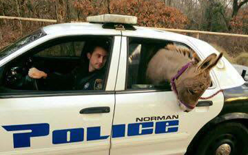 If you can’t cope with monster lizards, how about this donkey in the back of a police car? It reminds me of the story of a preacher who recruited a real donkey for a Christmas service – and didn’t realise that most donkeys have weak bladders. And please let me know if you have a source of ‘N’ gauge donkeys. Derek needs some for his latest module!