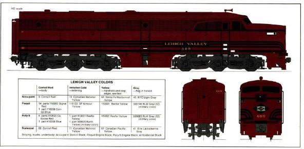 A paint Shop feature on the Lehigh Valley’s Alco PA-I passenger diesels contained the following paints and paint mixes (as above)…..