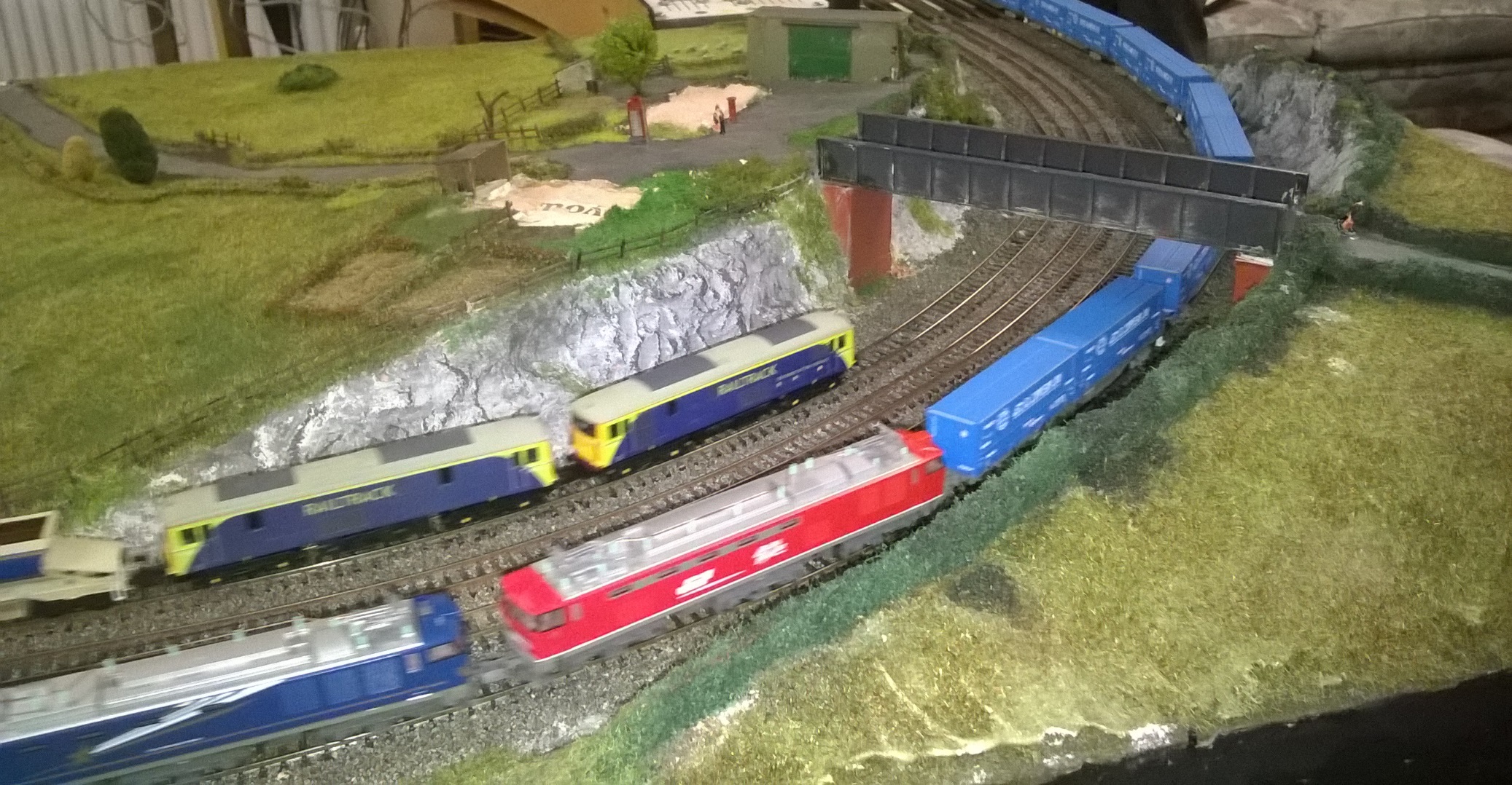 A new year – and a good meeting to start it. 9 members came out to run trains. Derek brought along some modern RailTrack permanent way trains. The specialised wagons used for ballast and the like are always interesting in any era, and the modern UK railways have some colourful specialised stock. Mind you, they rarely remain that colourful!