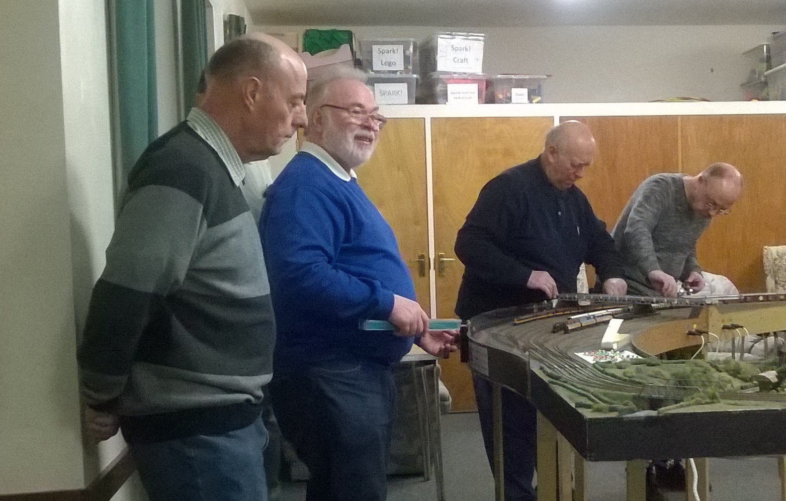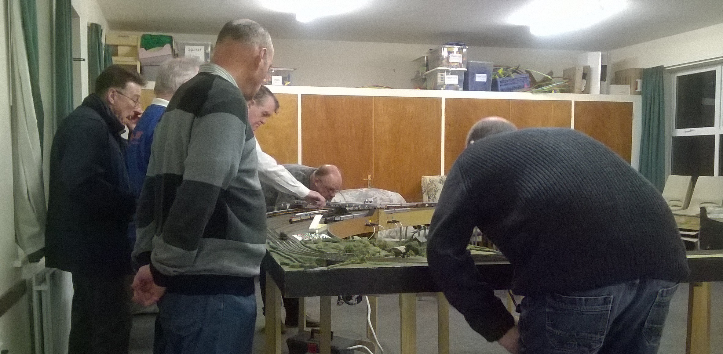 Another Thursday meeting, and despite the Chairman and Secretary being cream-crackered, and the Treasurer being sick and mental, we soon had a circuit up and running. The usual suspects are seen hard at work playing trains…..