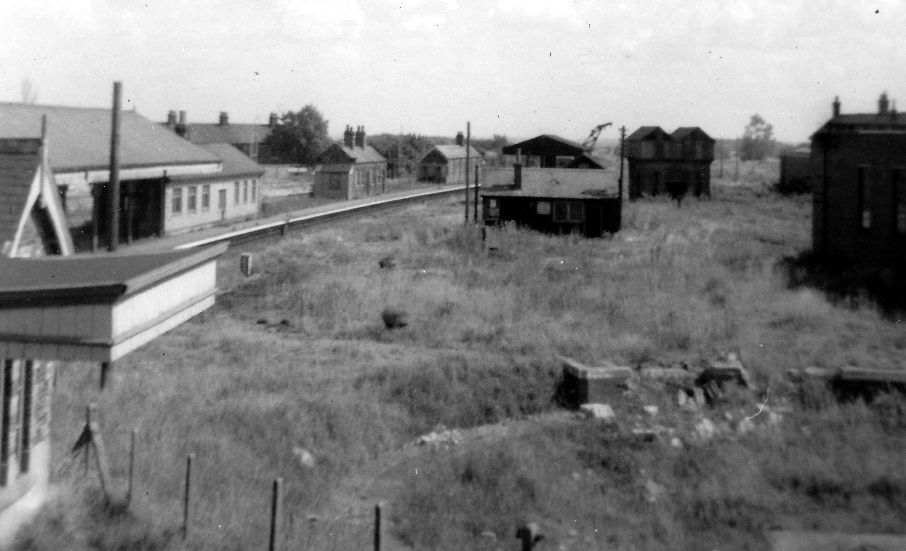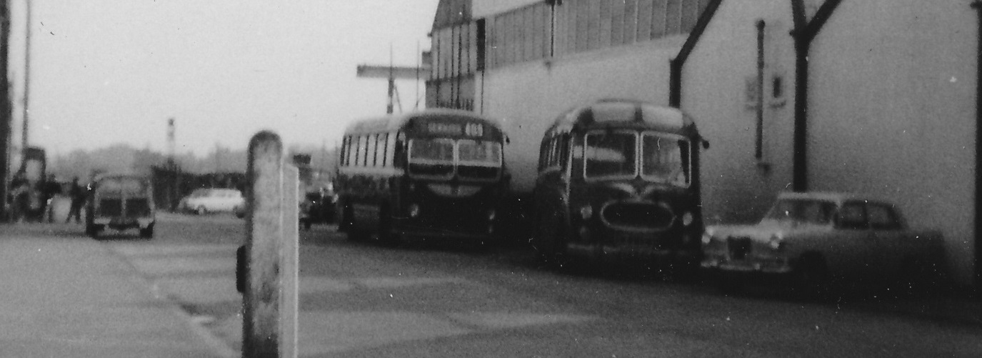 The Eastern Counties bus service that replaced DMUs on the line was in the station yard. The single decker in the foreground is an interesting specimen. The blurred Morris Minor on the left is our family chariot. The ‘L’ plates were for my mother – she eventually passed her driving test!