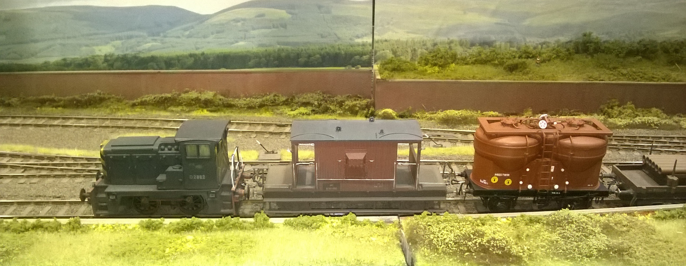 Dubmill Sidings was a long, rambling shunting layout in BR days, that featured some excellent diesels, generally left at random in sidings. I really liked the (?Heljan?) Falcon, precursor of the ubiquitous Class 47s. There was also some very nice rolling stock on display. I have always liked the ‘Prestwin’ hopper since I made an Airfix kit of one.