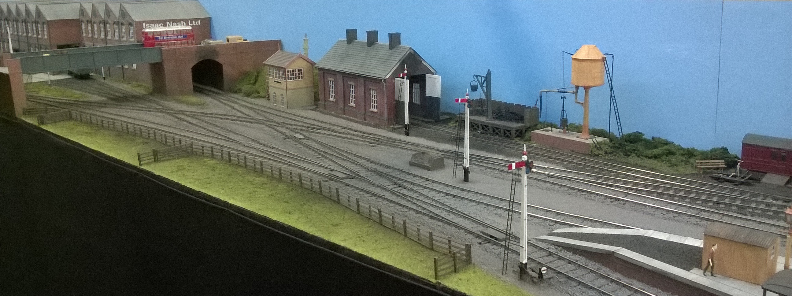 Belbroughton is a small (for O gauge) branch line terminus, with some distinctive pointwork to get into the fiddle yard. I liked the warehouse hiding the fiddle yard. A pretty well standard ruse, but very neatly done.