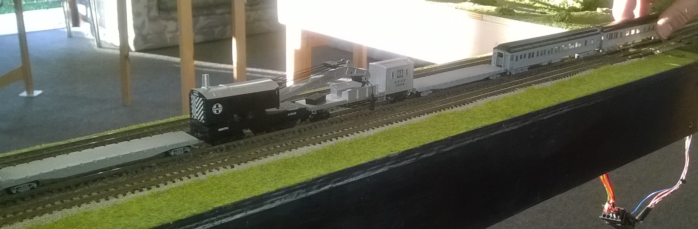 Simon had an excellent Santa Fe works train on show, headed by a Mallet with analogue sound. Even this monster locomotive struggled occasionally with the white metal flat cars in the train behind, but it looks most impressive once on the move.