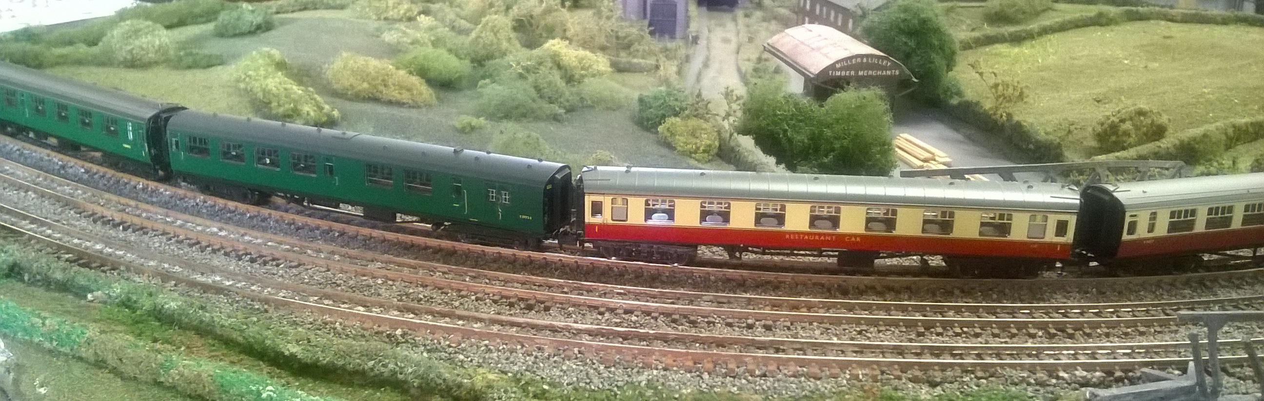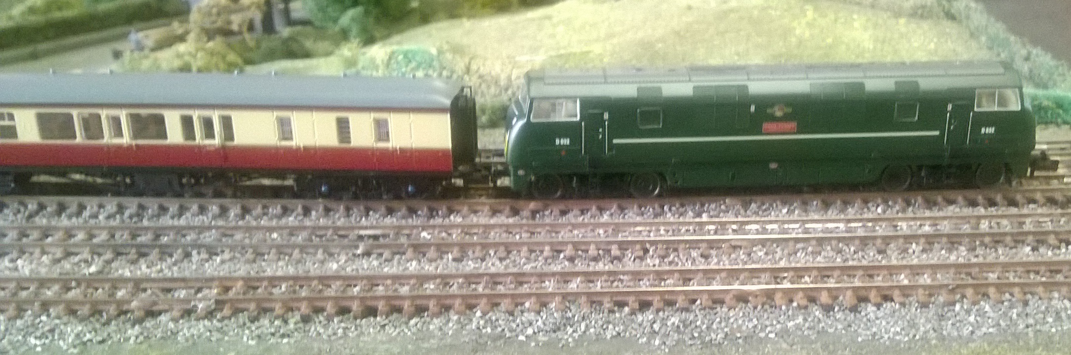 I’ve been wasting my money again, with a second-hand Graham Farish ‘Warship’ diesel-hydraulic. And of course, then I had to invest in a train for it to pull – a mixture of Hawksworth, Bullied and BR Mk1 coaches. It ran very well, and looked good! Having more or less retired on Tuesday, impulse purchases like this will have to be cut down….