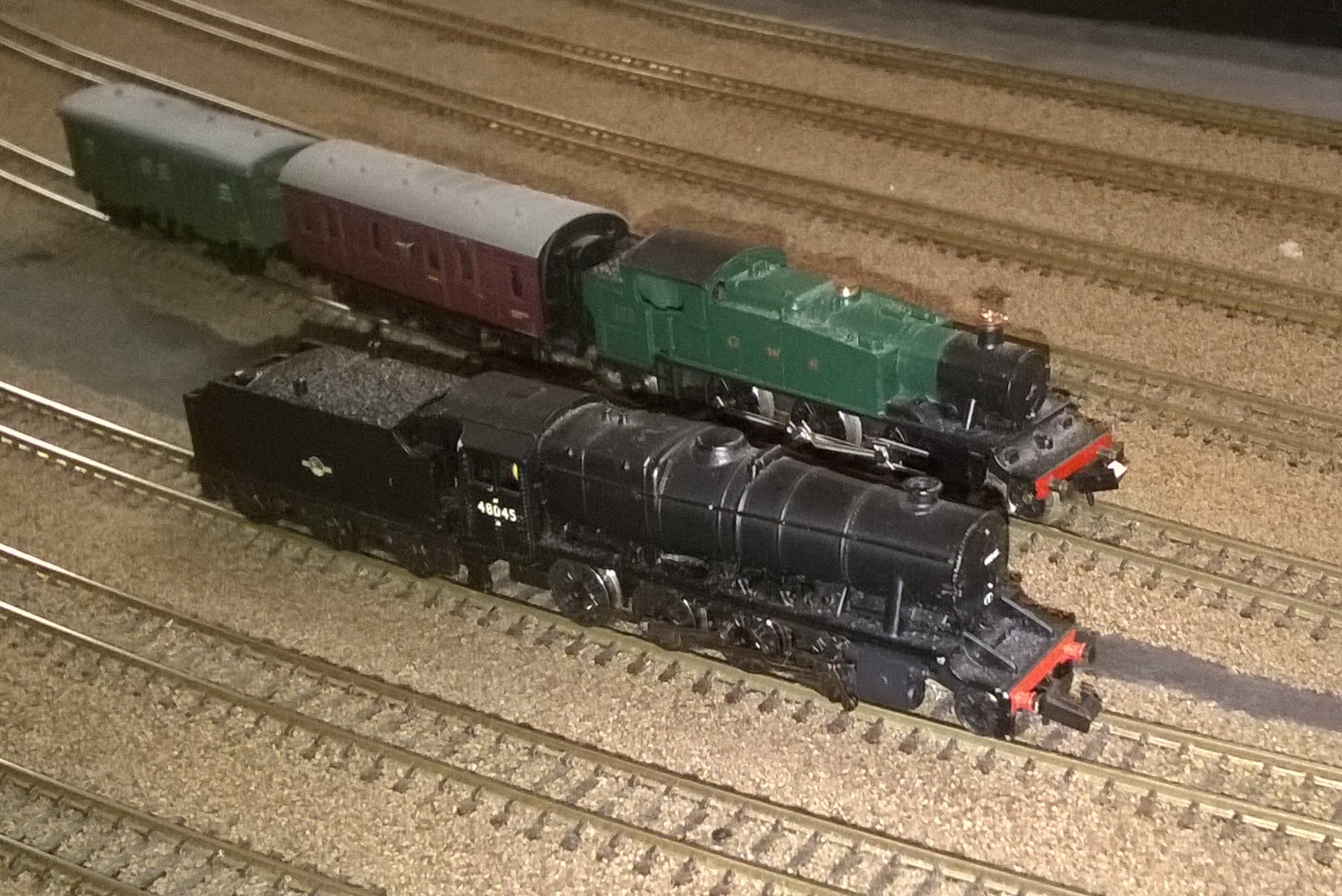 We had a slow start to the evening, with Derek the At sunning himself in Portugal, and the Cha(I)rman suffering from an overdose of early milk rounds. The rails looked a bit empty, as Paul was also on holiday, so no long Japanese trains were on display.