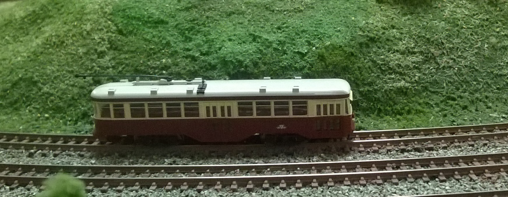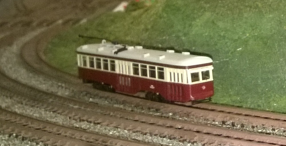 I tried out one of my Toronto Peter Witts on the main line. Ran like a watch and coped with all our iffy track joints despite its tiny wheels. The photos below have echoes of the Pacific Electric 4 track sections, but with no overhead, of course….
