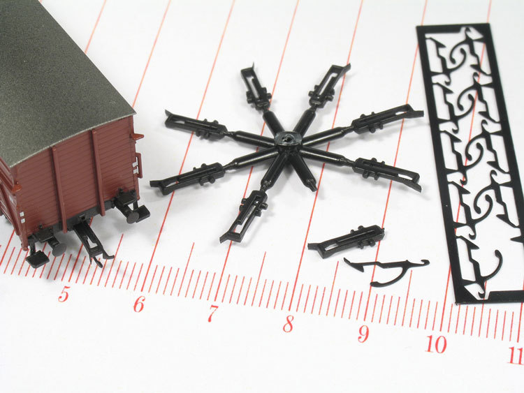 They consist of moulded bar and an etched hook, which simply has to be engaged with a pin on the shank of the coupling and then inserted into a standard NEM coupling pocket. I did manage to break a couple before I realised that the hook does not clip-engage with the pin and is simply held in place when the coupling is inserted into its housing.