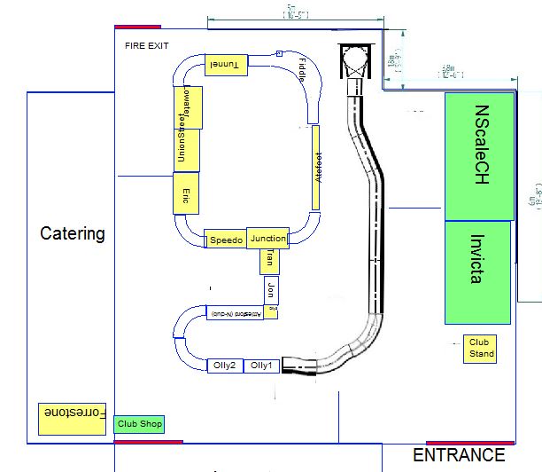 Planning for next year’s exhibition is now going well. I’ve put together a hopefully final layout for the halls, and have managed to link together the N-mod, N-club and Alpenbahn systems into a cohesive system. I hope it will all fit….
