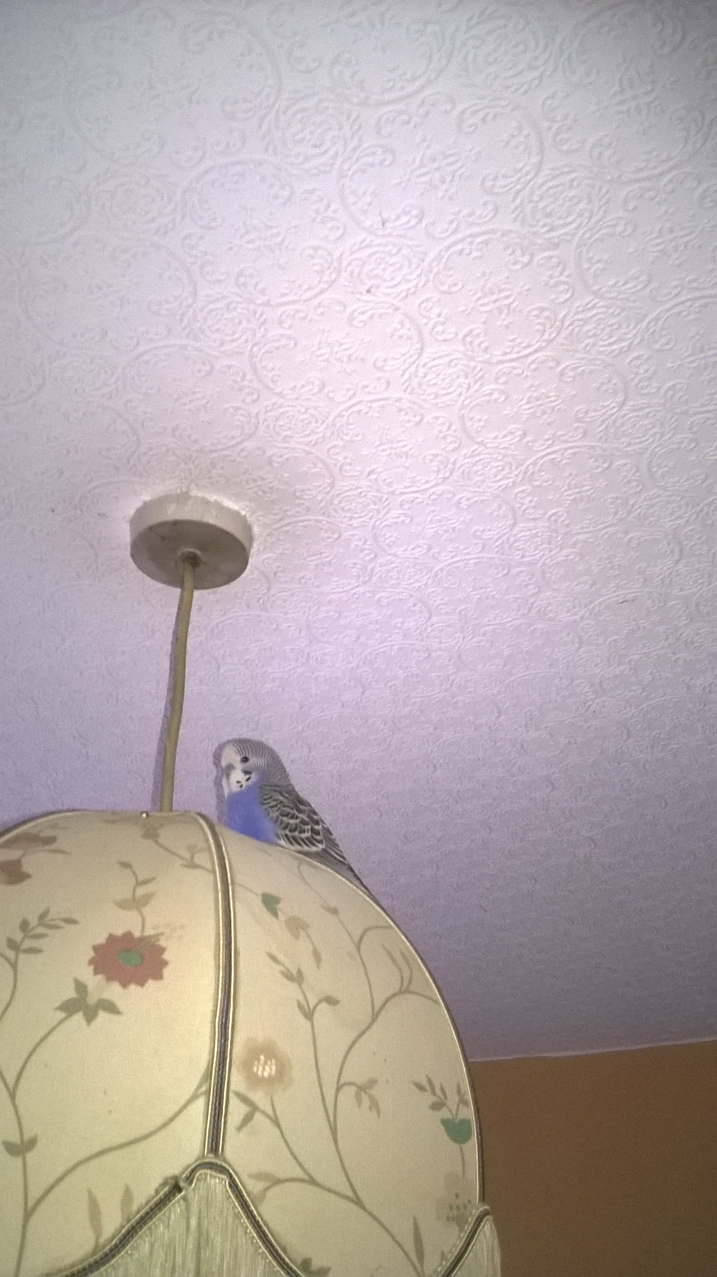 The new budgie has been named ‘Busta’, as he spends his whole time trying to break out of his cage…..