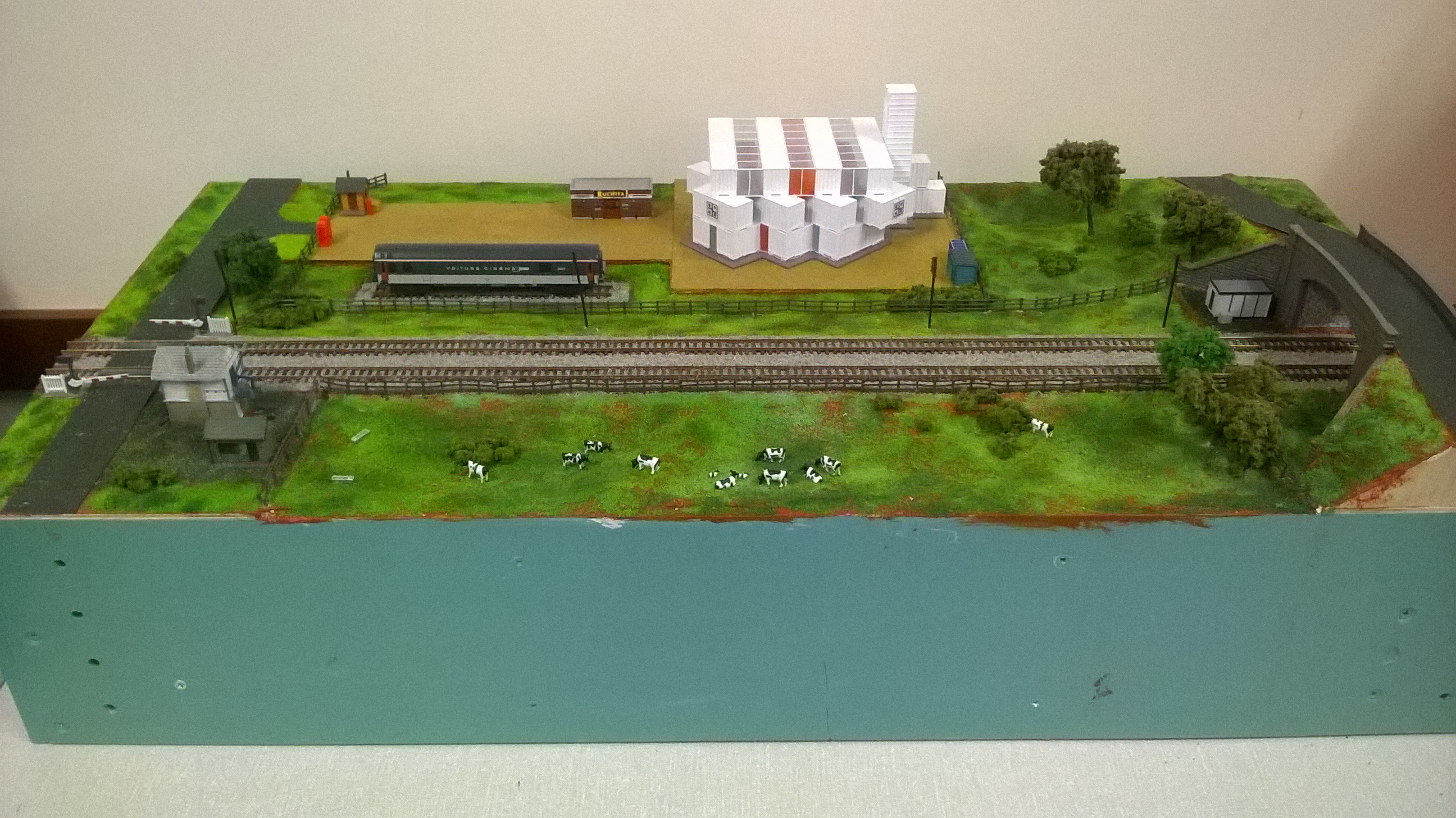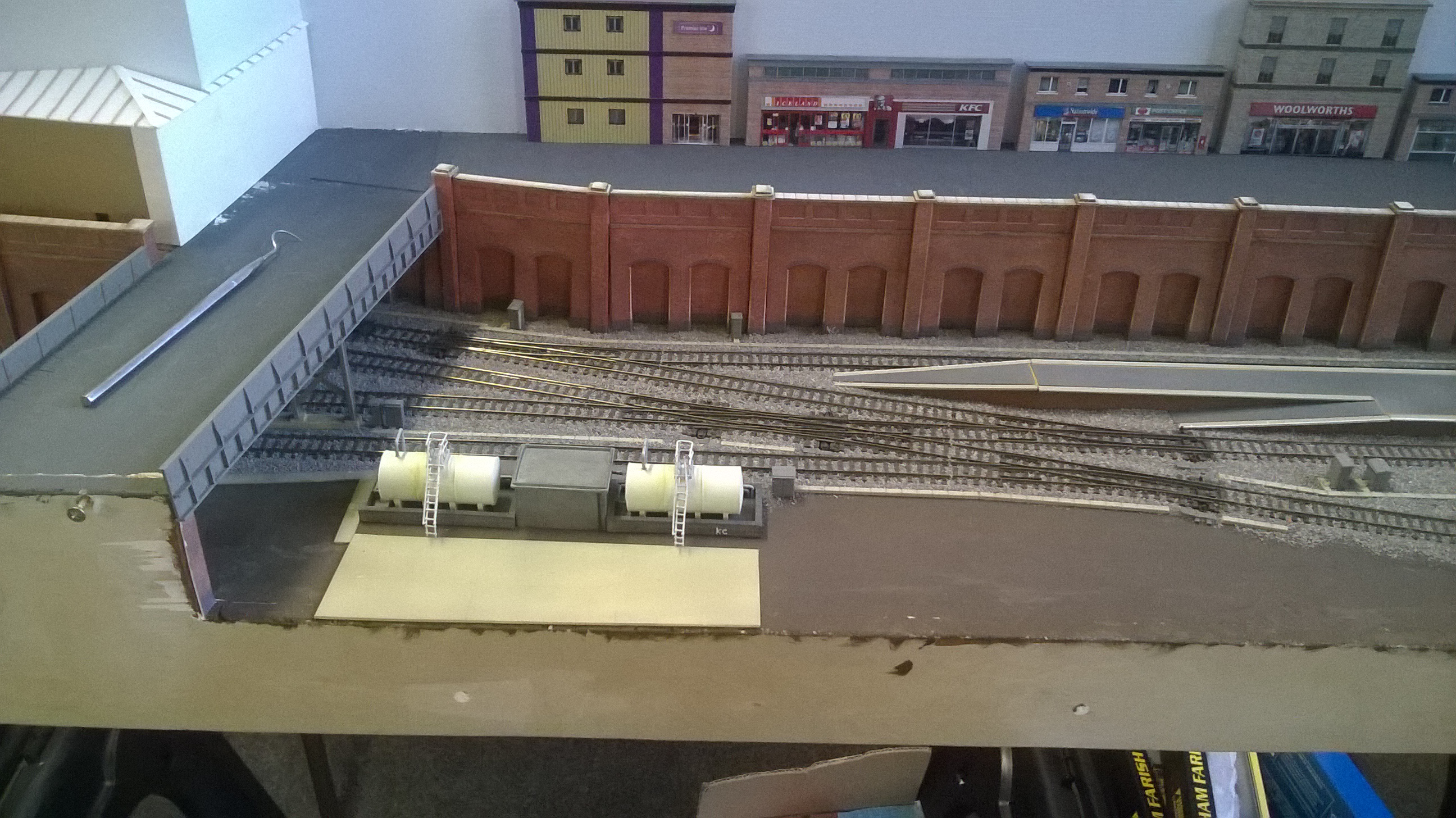 Sean brought his layout along, and there has been some progress in the scenery and ballast around the track….