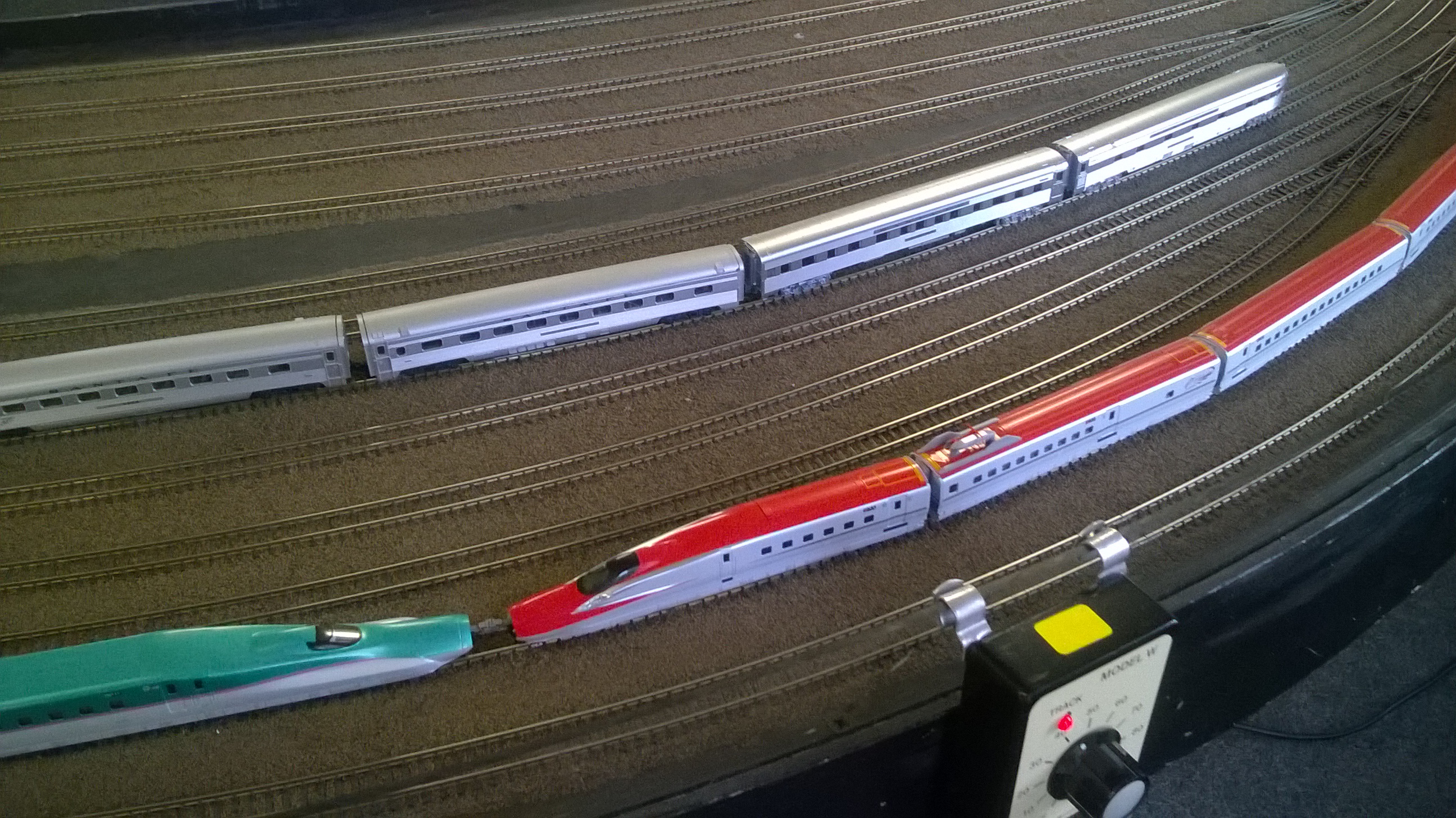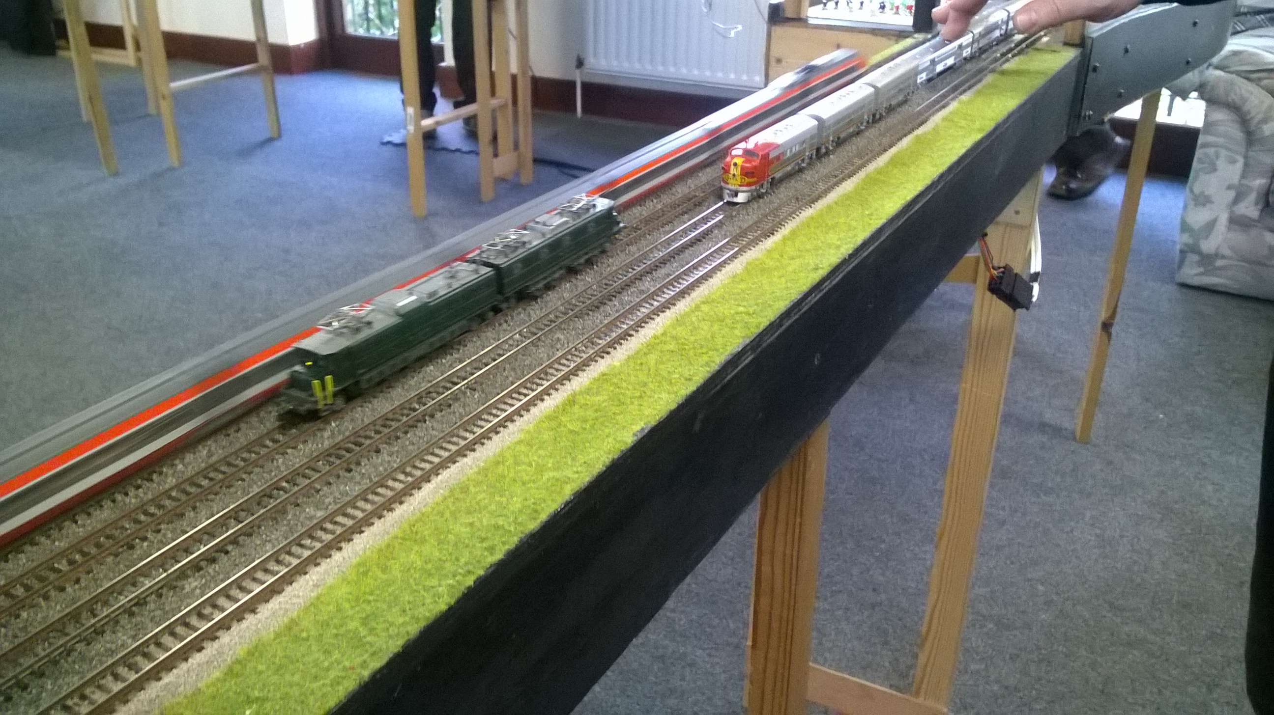 John was testing this interesting early Swiss electric, whilst Simon ran a 22 car Santa Fe passenger train….