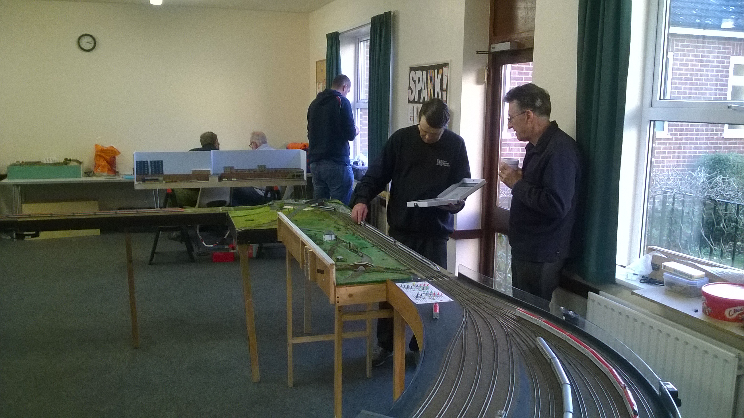 At the end of the afternoon we left a cache of modules, trains and other equipment to load into the van on Monday for the trip to Stuttgart. And eight of us then retired for curry!