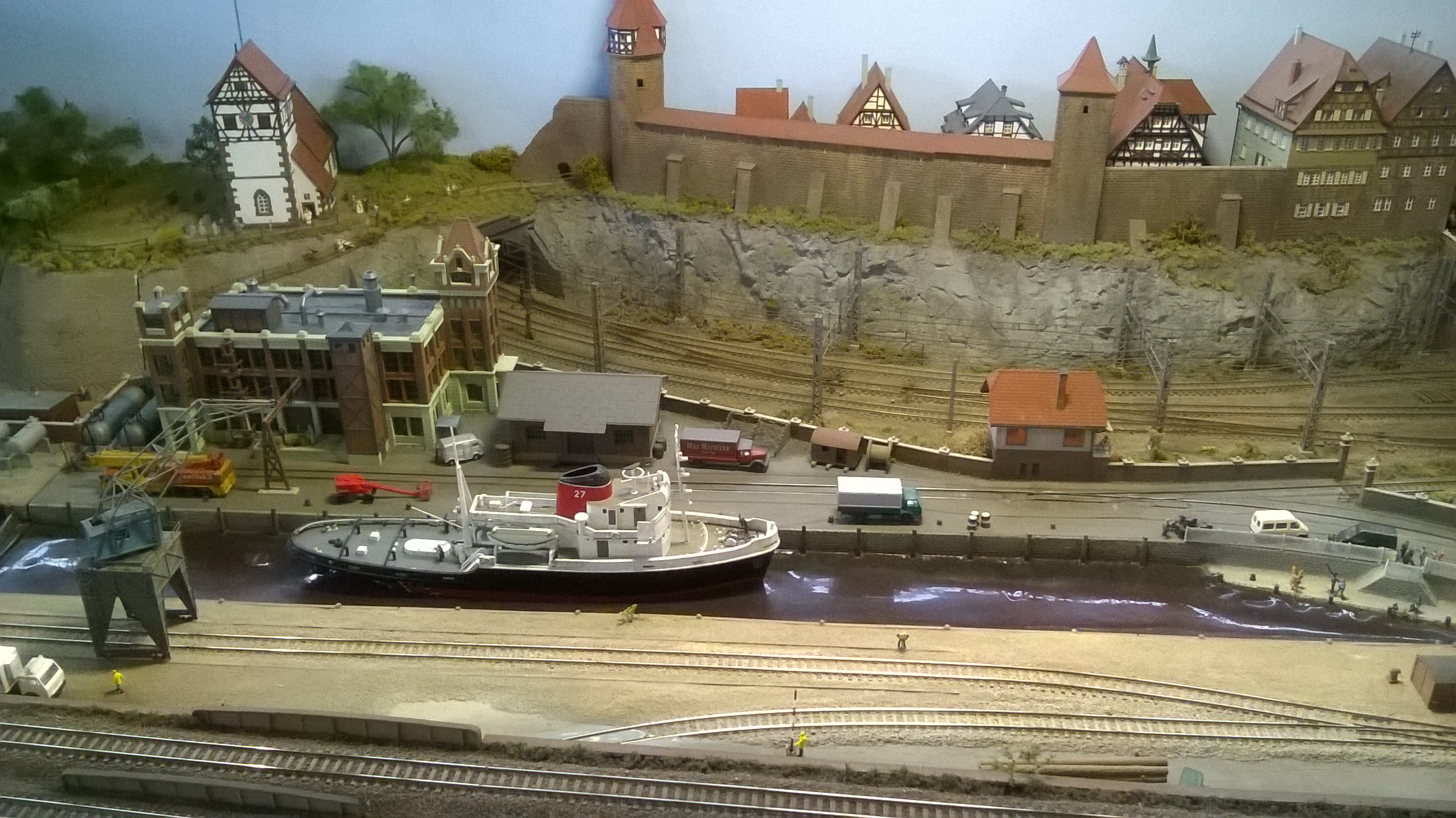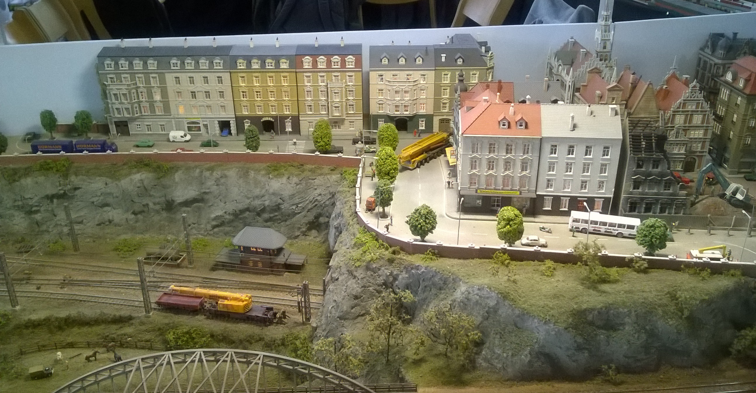 The modular setup was in the form of a U, with 4-track N-mod along one side, 2-track N-club along the end, and then 2-track N-club fronting the Konigshaven layout along the other leg of the U. Konigshaven exhibited at Stuttgart 10 years ago, and the owners took the opportunity for a 10th anniversary return. All ran well for all four days, a complement to the builders of what is now a 20-year old layout. The only disaster was a train of wagons that found their way to the floor. Fortunately most survived, and the others can be renovated with new bogies.