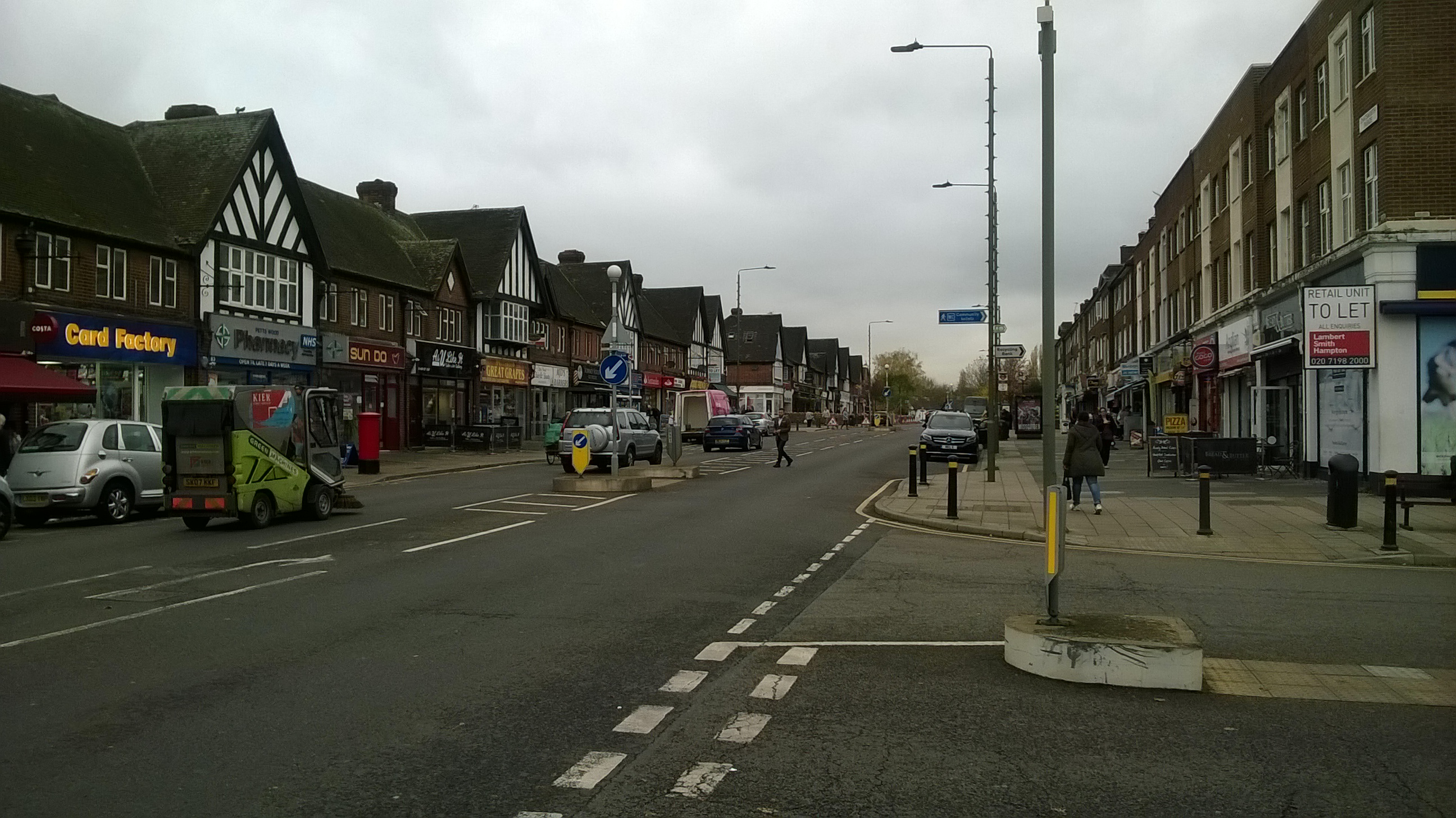 Finally, a view of the shopping street. In one sense hardly changed from the 1930’s, with the ‘Brewers Tudor’ shops. But none of the shops seem to be as they were in the 1960’s. Food shops have disappeared – replaced by the supermarkets – and there are a lot of restaurants and beauty salons, and ‘Card Factory’ and ‘Costa Coffee’. An interesting social comment on changing times!