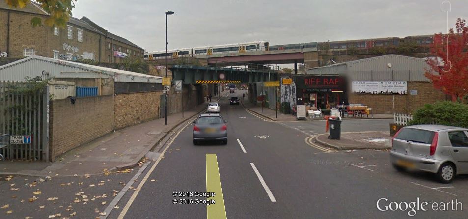 As it is drawn, it would be difficult to keep the original design of Victoria Street on a viaduct, as two road bridges wouldn’t cross a railway viaduct. But railway crossings at height aren’t unusual – Ewer Street near London Bridge, and Loughborough Junction near Brixton are good examples. Here’s the Loughborough Junction double crossing, from Google Streetview. If you move closer to the bridge, the trains disappear, and you lose the evocatively named ‘Tram Close’ on the left.