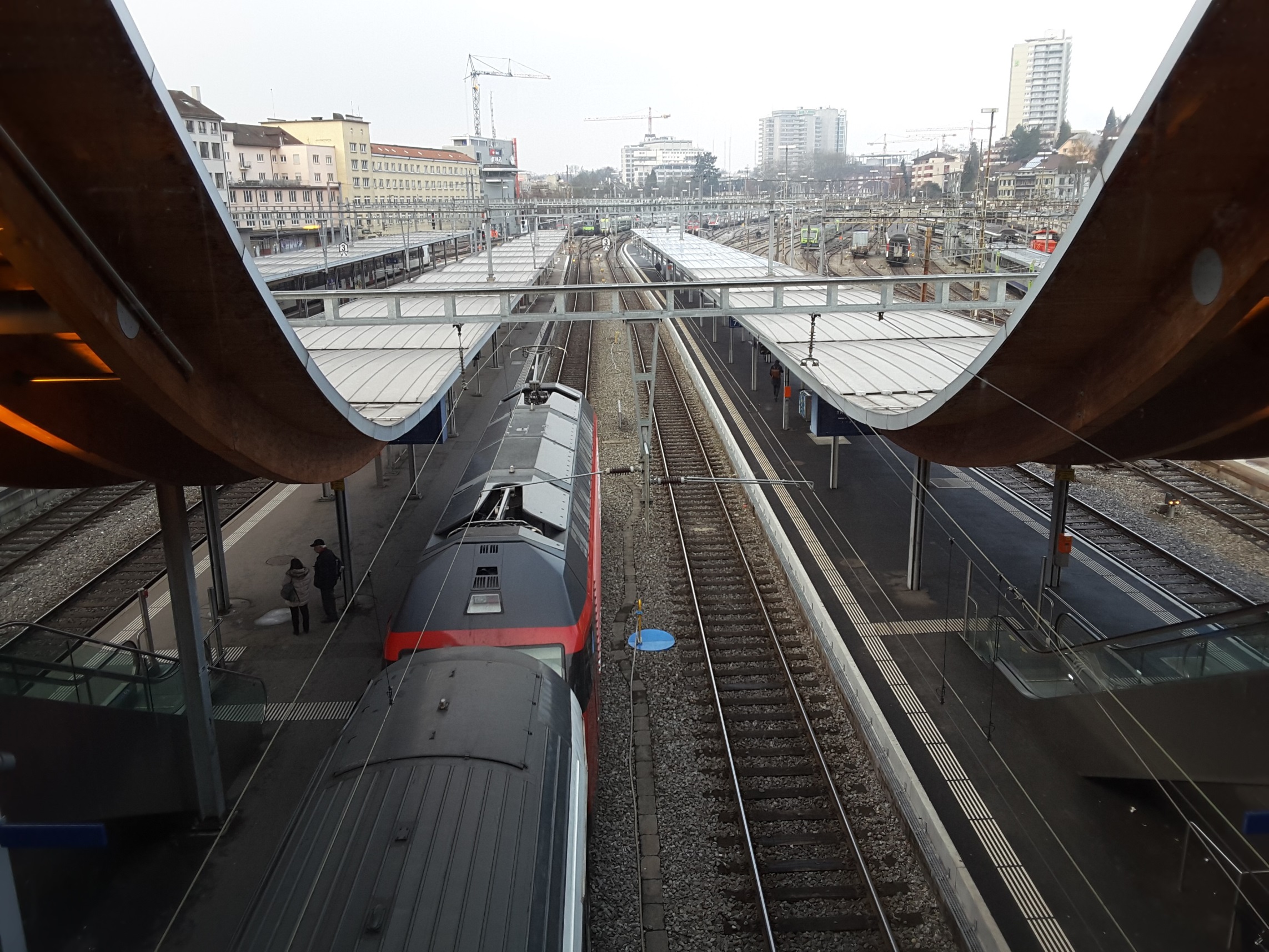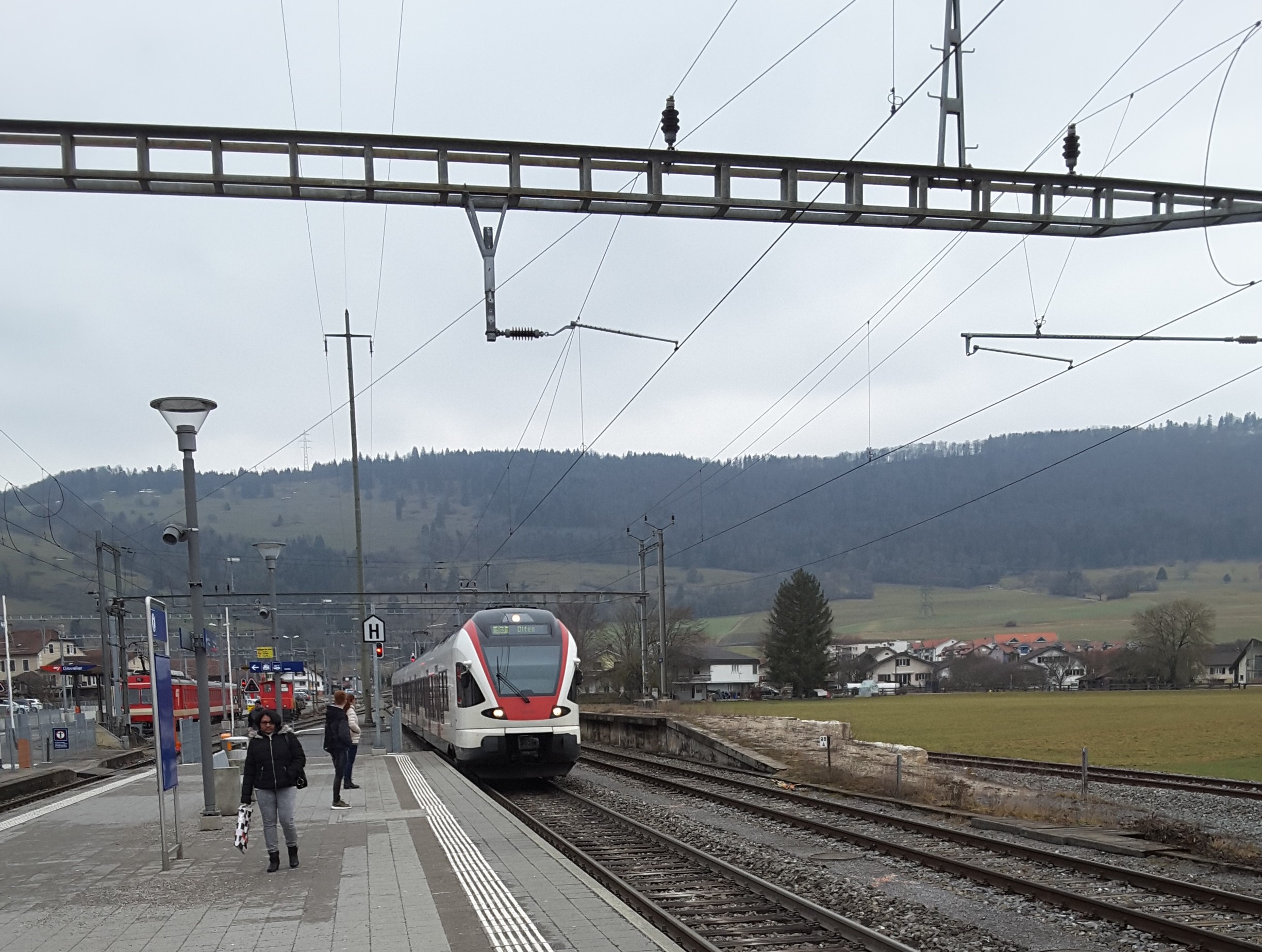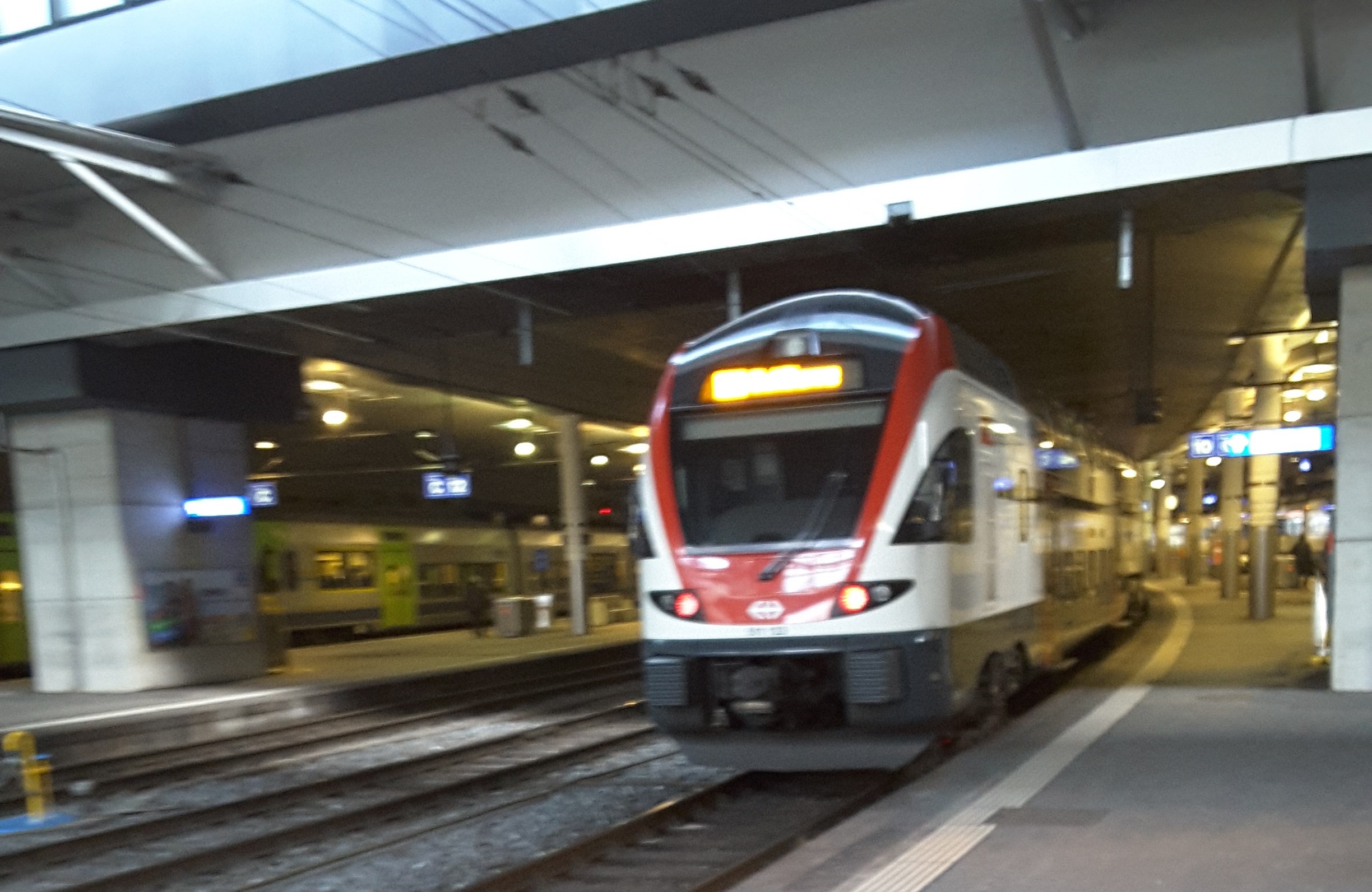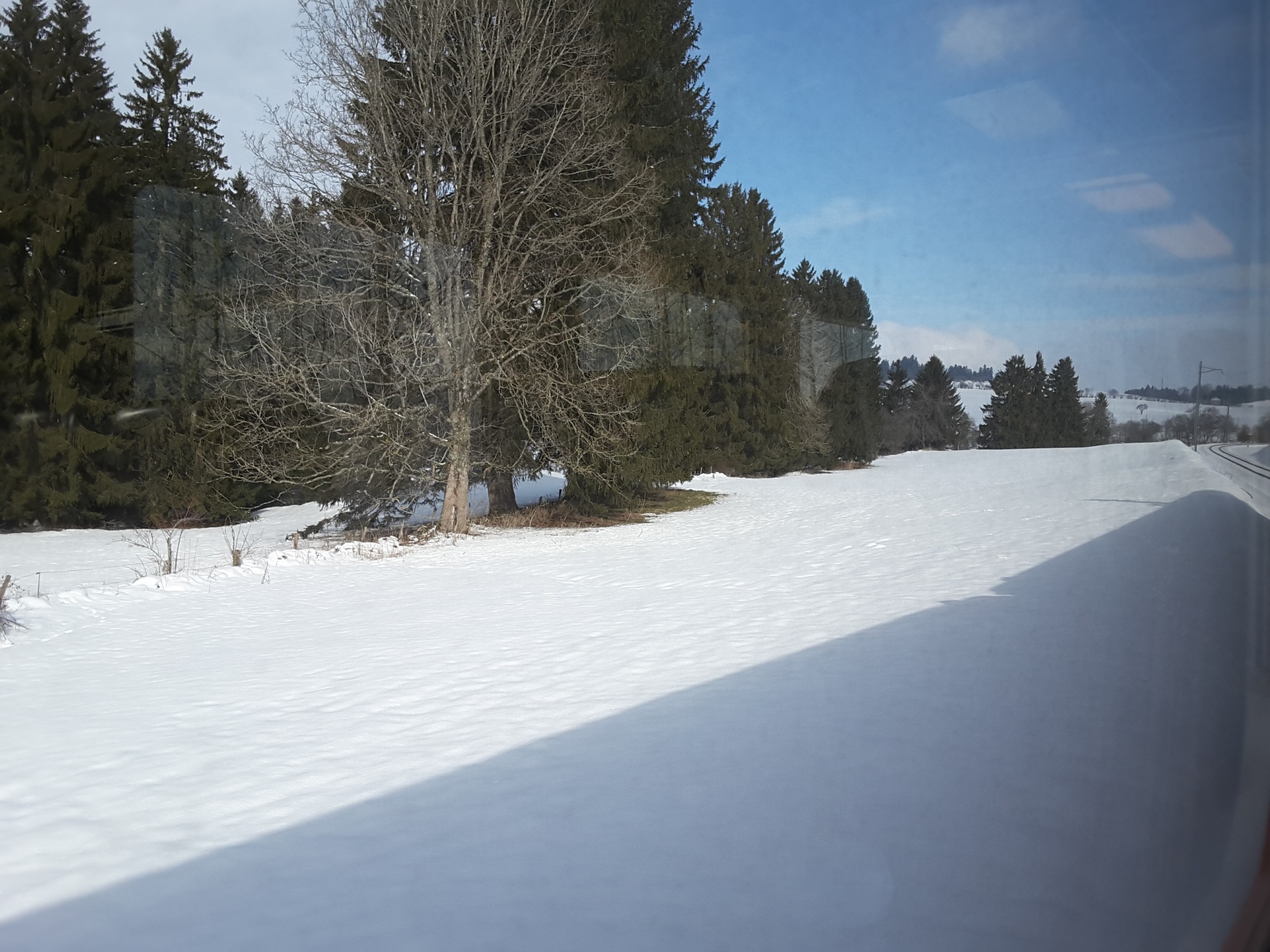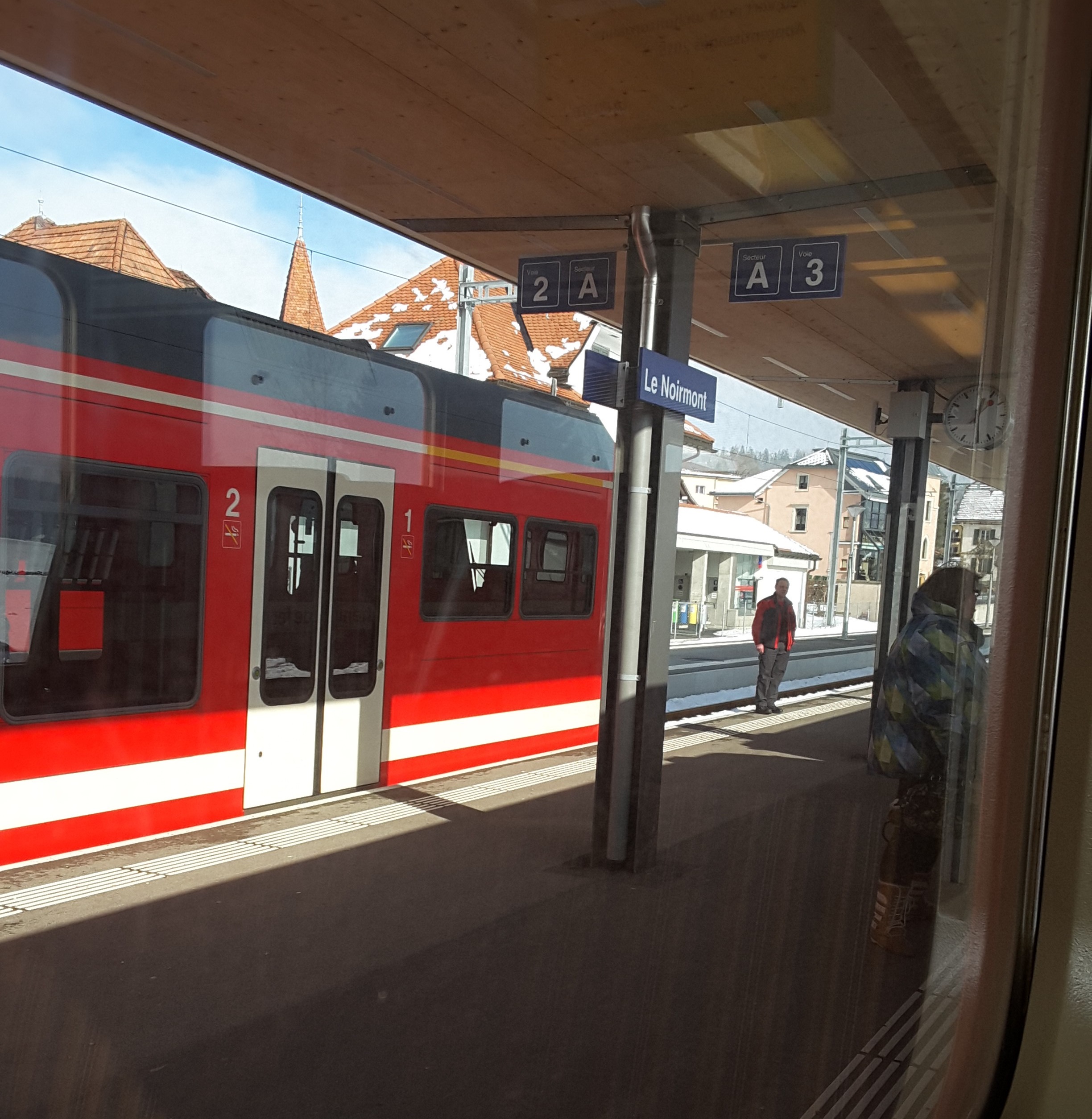 Started out again in low cloud/mist to do a round trip through the new Gotthard Base Tunnel to Bellinzona via Luzern and Arth-Goldau. Entered tunnel in misty conditions and exited 20 minutes later to heavy snow. At Bellinzona saw return train was running around 20 minutes late but unlike us Brits the Swiss laid on an extra train to run in the scheduled path of the delayed train. By the time we got back to the tunnel the snow had started to lay. On return to Interlaken there was a clear blue sky and the snow had almost gone. On return to Lauterbrunnen for the first time this week I could see up the valley and to Wengen.