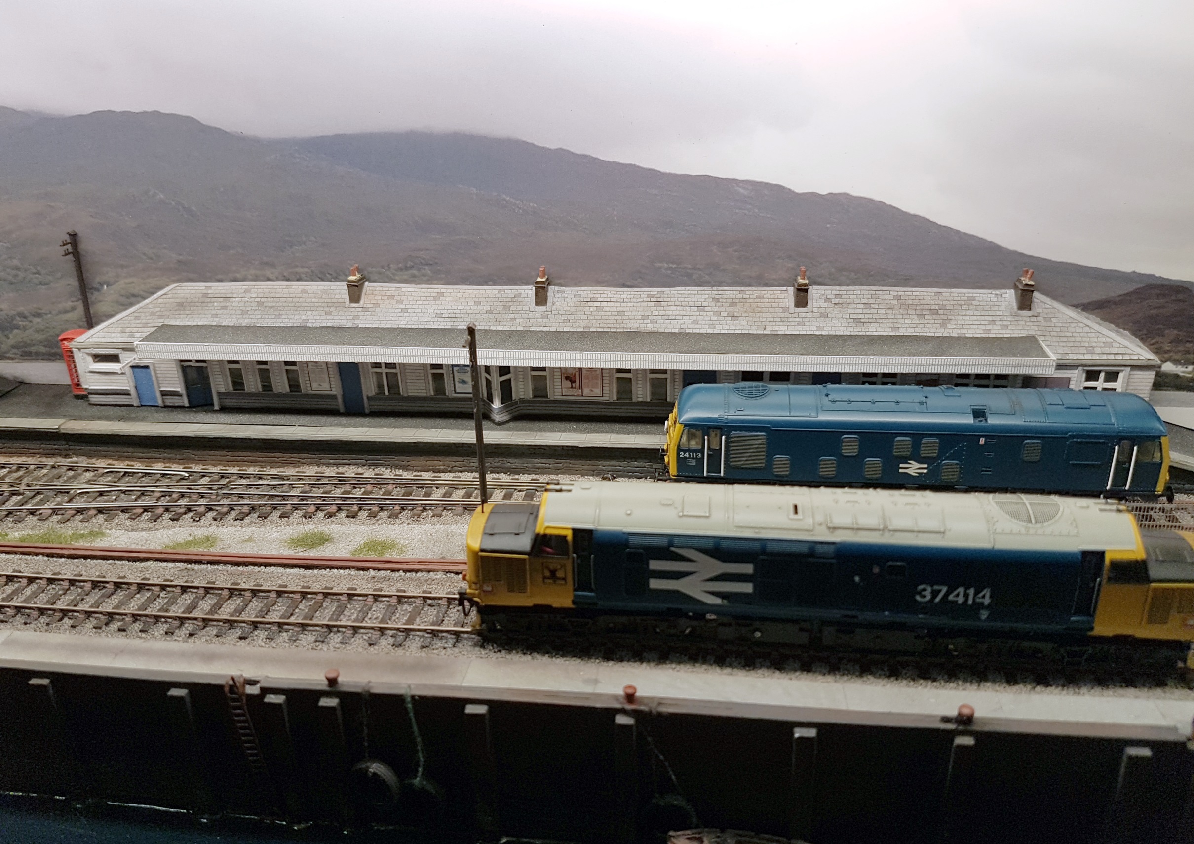 Kyle of Lochalsh was perhaps the smallest layout on show, 5′ x 6″, modelling the west coast of Scotland in 2mm fine scale.  Despite its small size, it’s recognisable as Kyle, and the delicate 2mm track work and the evocative Scottish weather on the back scene stand out.