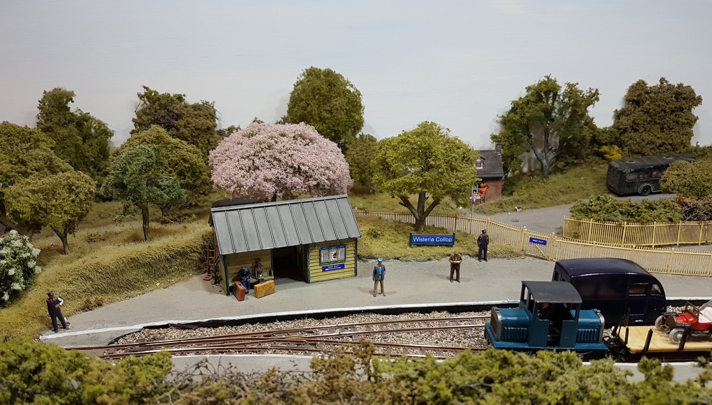 A simple 009 layout, Wisteria Collop, stood out for its trees in springtime bloom.  I didn’t  spot the wisteria though….