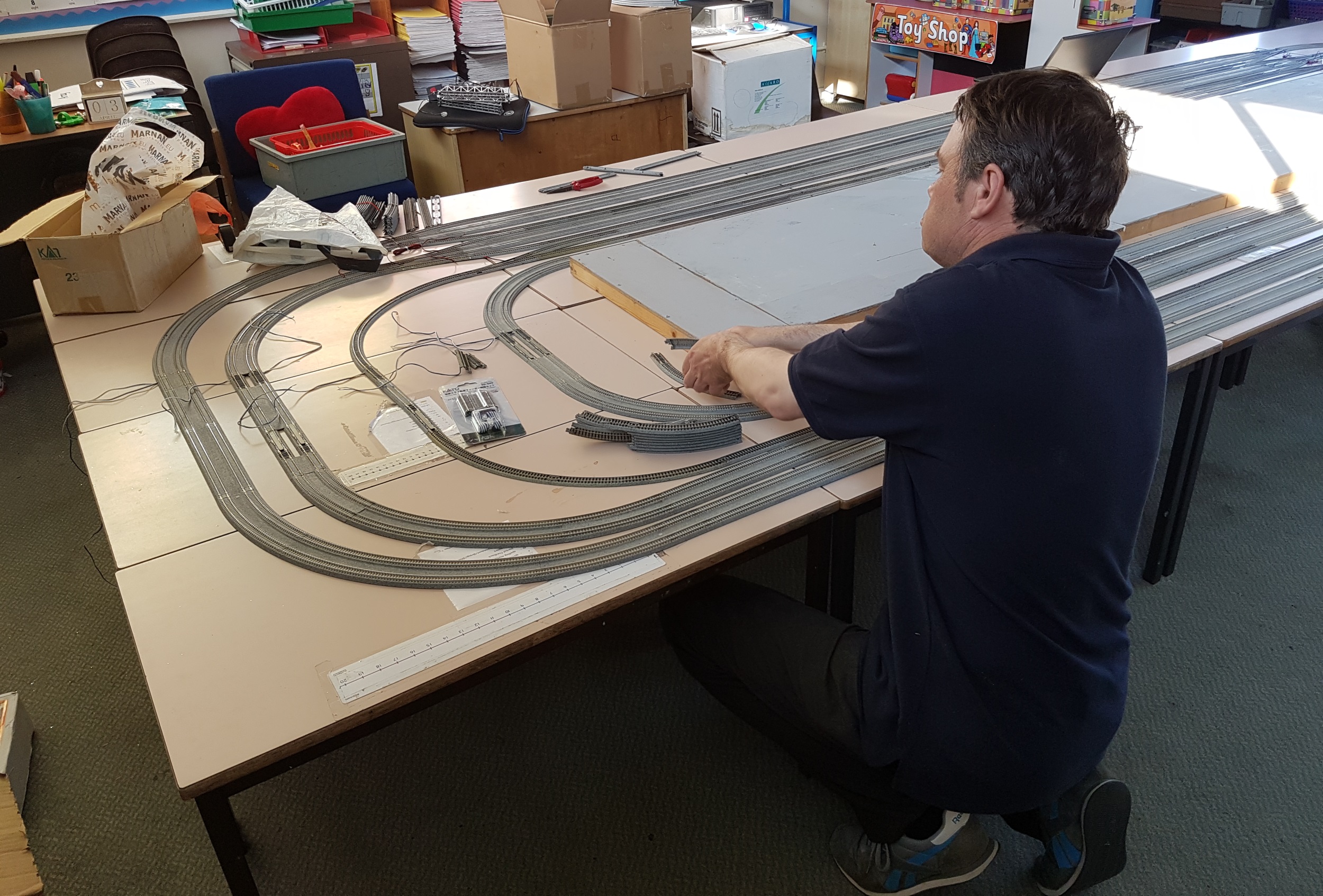 In another room, Paul was piecing together all his Kato Unitrack for the Kato Racetrack….