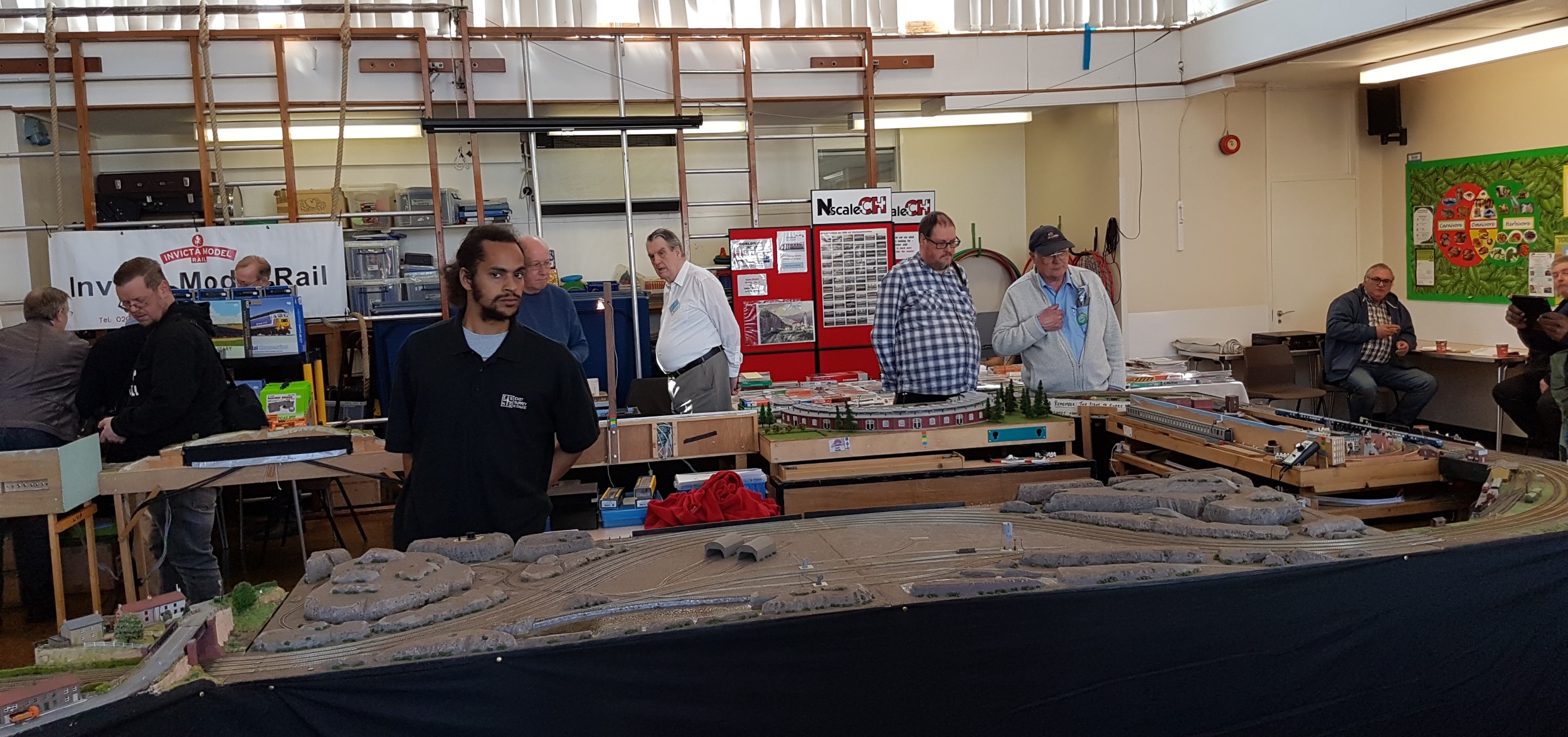 But work started on the Friday afternoon, collecting things from the club room about 1pm, then slowly working to put the N-mod/N-club circuit together. Ideally, one should have a trial run of the layout to be exhibited, to make sure all is working. However life has been just too hectic, so a long afternoon to allow for a few repairs and rewiring is a good substitute. And there’s time for coffee breaks and a fish-and-chip supper.