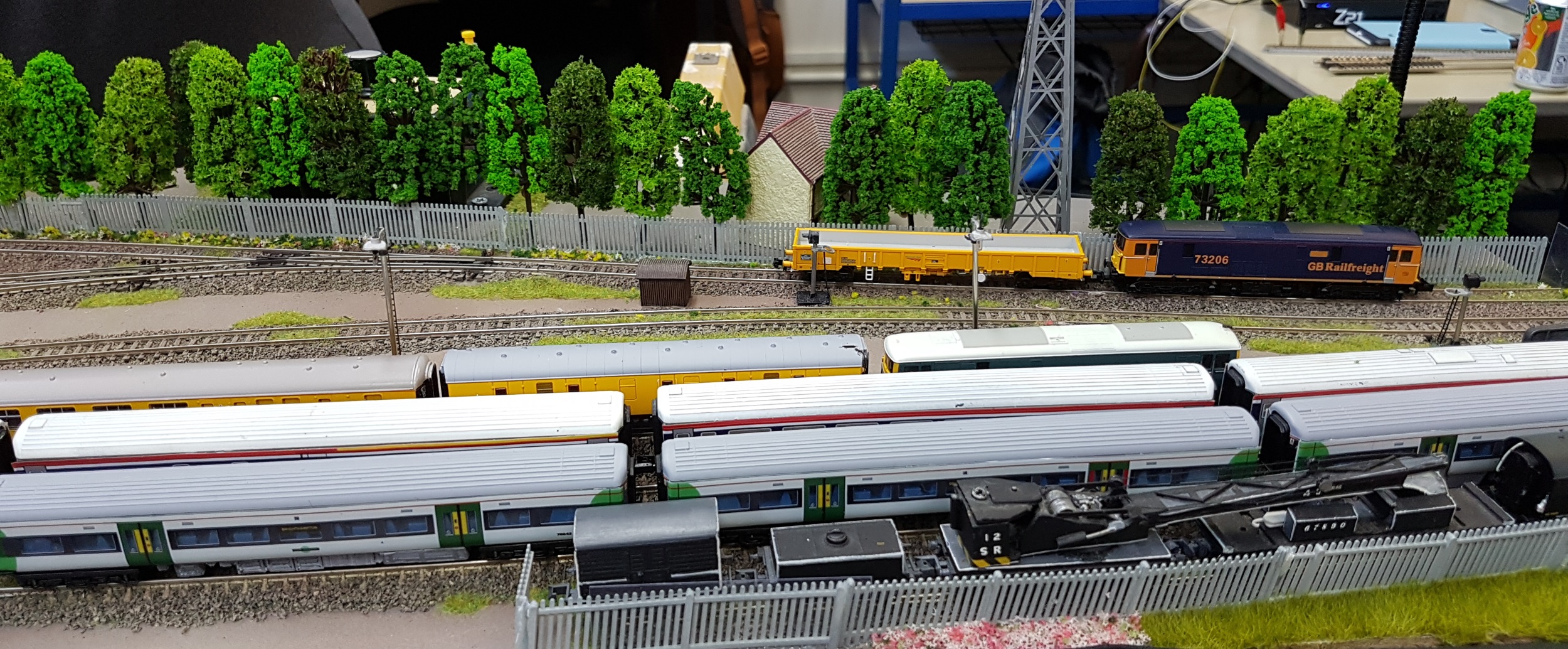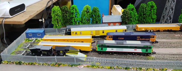 Another small shunting layout, Tunbridge Yard West is a 4ft x 1.5ft, modern image, layout set in the early 90s as a shunting / storage yard for Network Rail, diesels with some emu storage sidings. It is loosely based on Tunbridge Yard West and the Inglenook Sidings set up. I liked the electric pylons in the background, though I’d probably break them if I tried to uncouple anything on the layout.