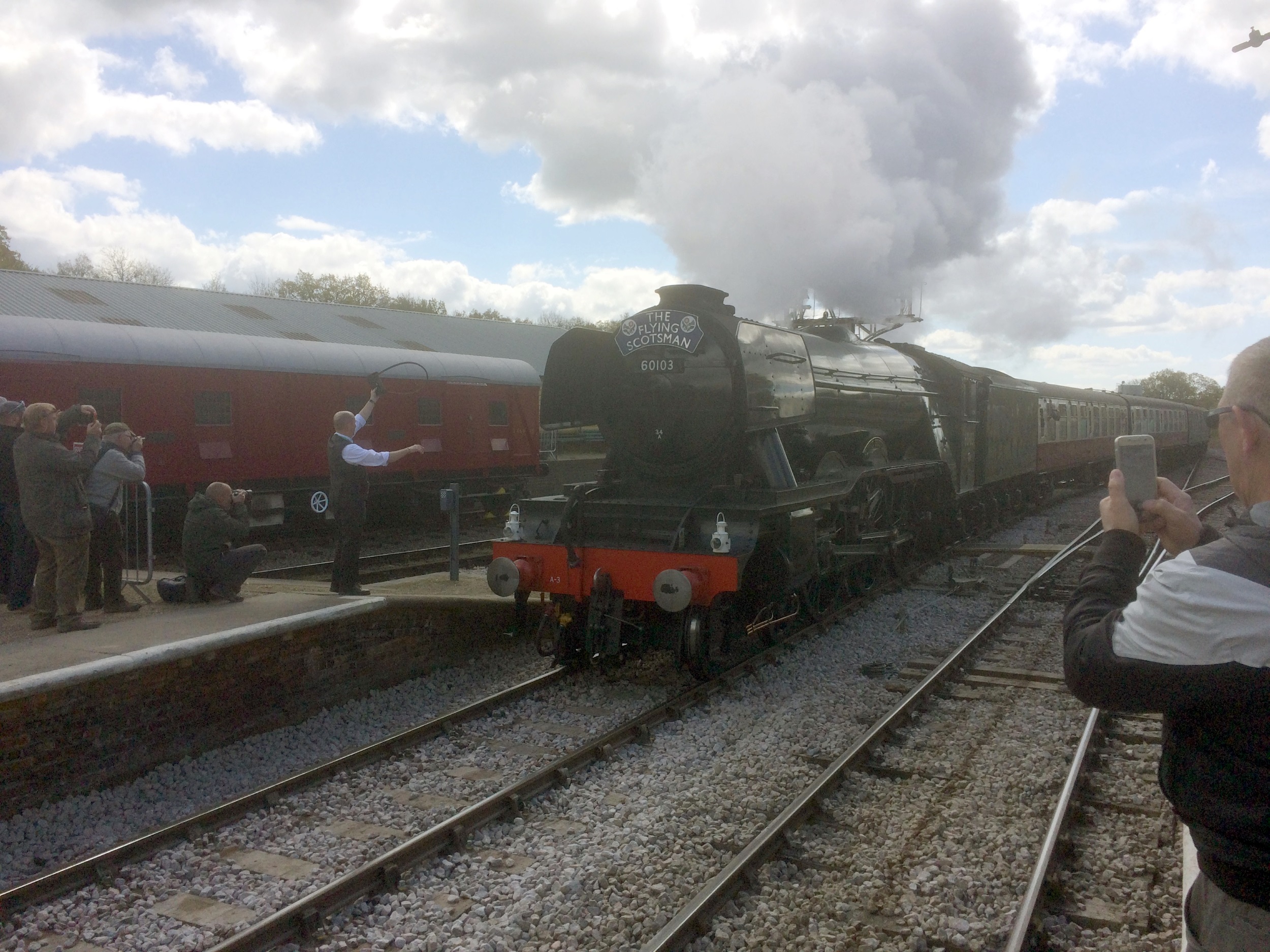 Thanks Peter, for this shot of the Flying Scotsman on the Bluebell Railway. Not everyday that 60103 has to collect a tablet for single-line working. I wonder how many times, if ever, that happened in pre-preservation days?