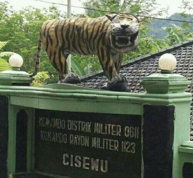 The Indonesian army has demolished a tiger statue in front of a base in West Java after it became a laughing stock online. The grinning tiger in a small village in Garut was supposed to be a mascot for the Siliwangi Military Command.